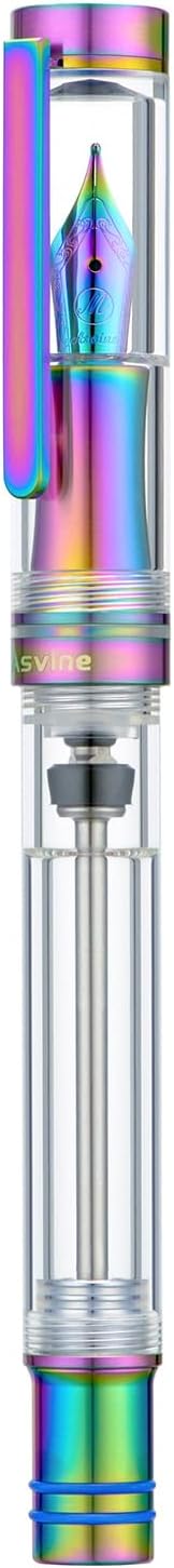 Asvine V200 Titanium Fountain Pen Vacuum Filling, Rainbow Medium Nib Clear Demonstrator Acrylic with Pen Case and Wrench