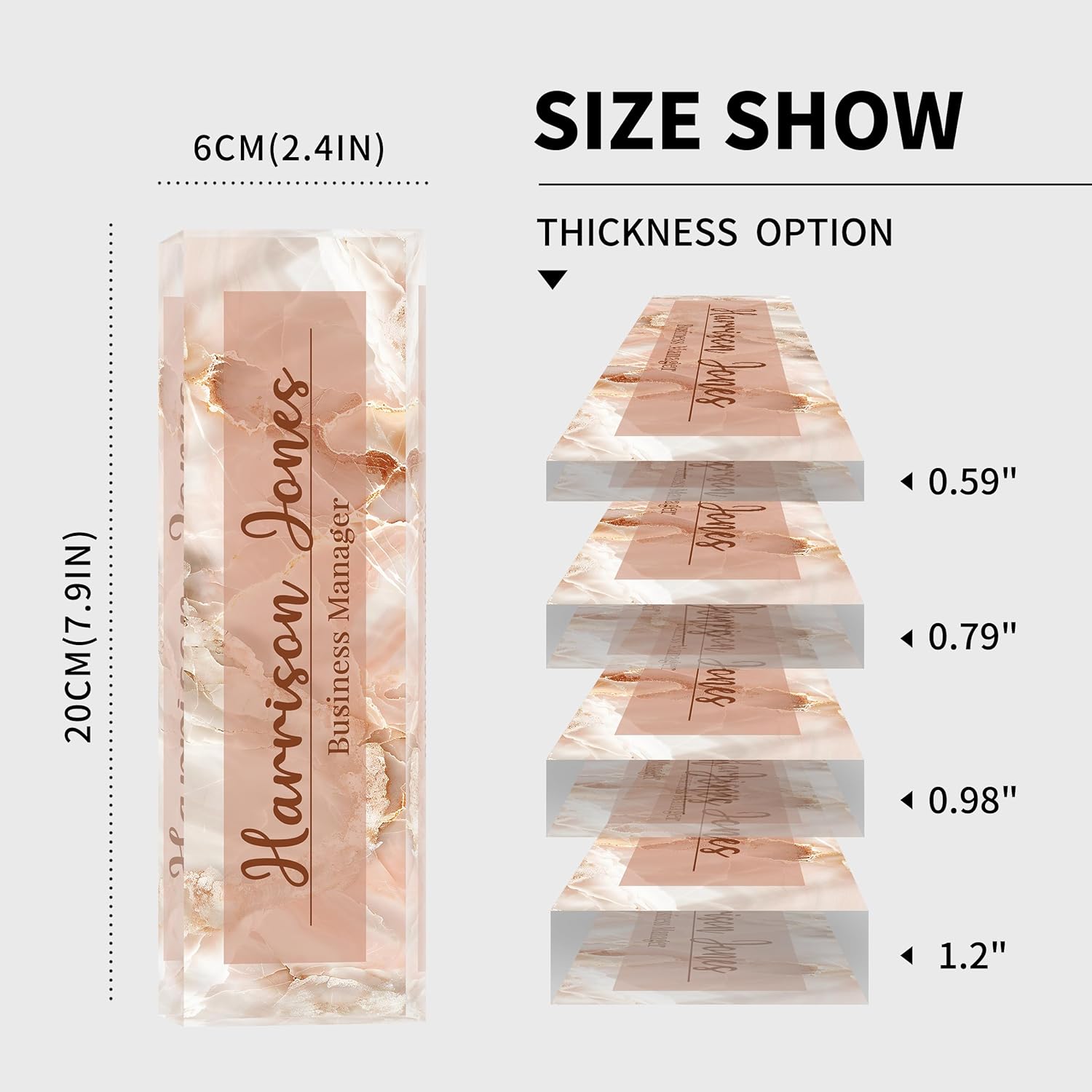 - 【Perfect Office Decor】Desk name plate personalized may be an indispensable item around you. It can be used as decoration for various occasions, such as offices, study rooms, conference rooms, classrooms. It also comes in 4 different sizes, suitable for different office scenarios, Clear 3D effects showcase your favorite fully designs and names, add an extra touch of elegance to your office.