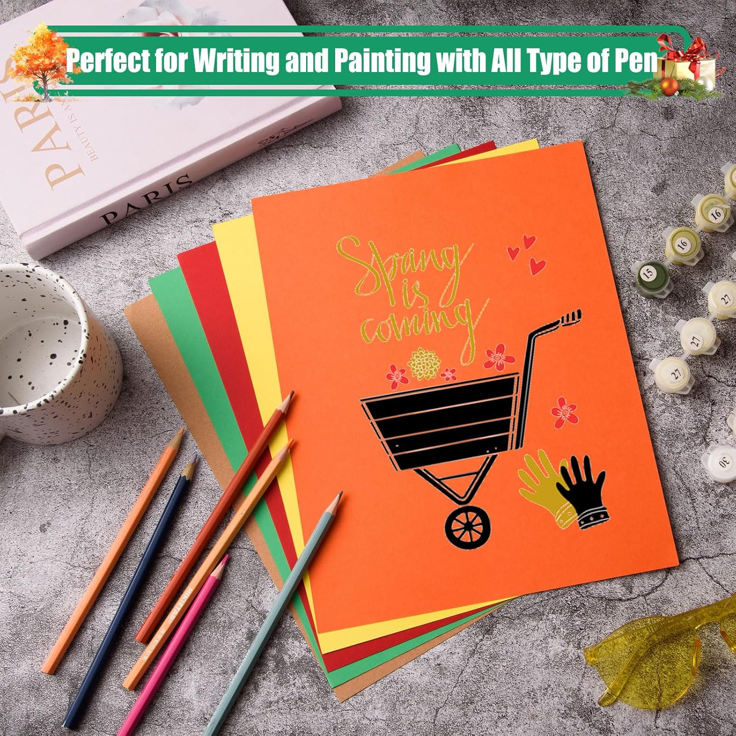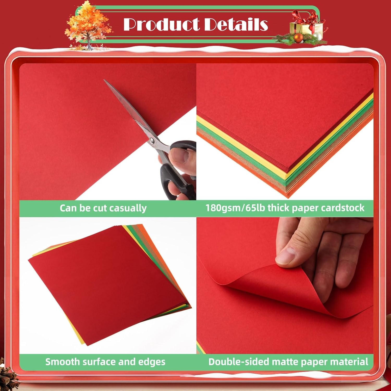 - Cut Freely: this multicolor cardstock paper holds a nice sharp crease when folded and held and no white core will show when scoring, this material can also be easily cut, folded and crafted, great for writing, drawing, doodling, and making holiday DIY crafts or cards.