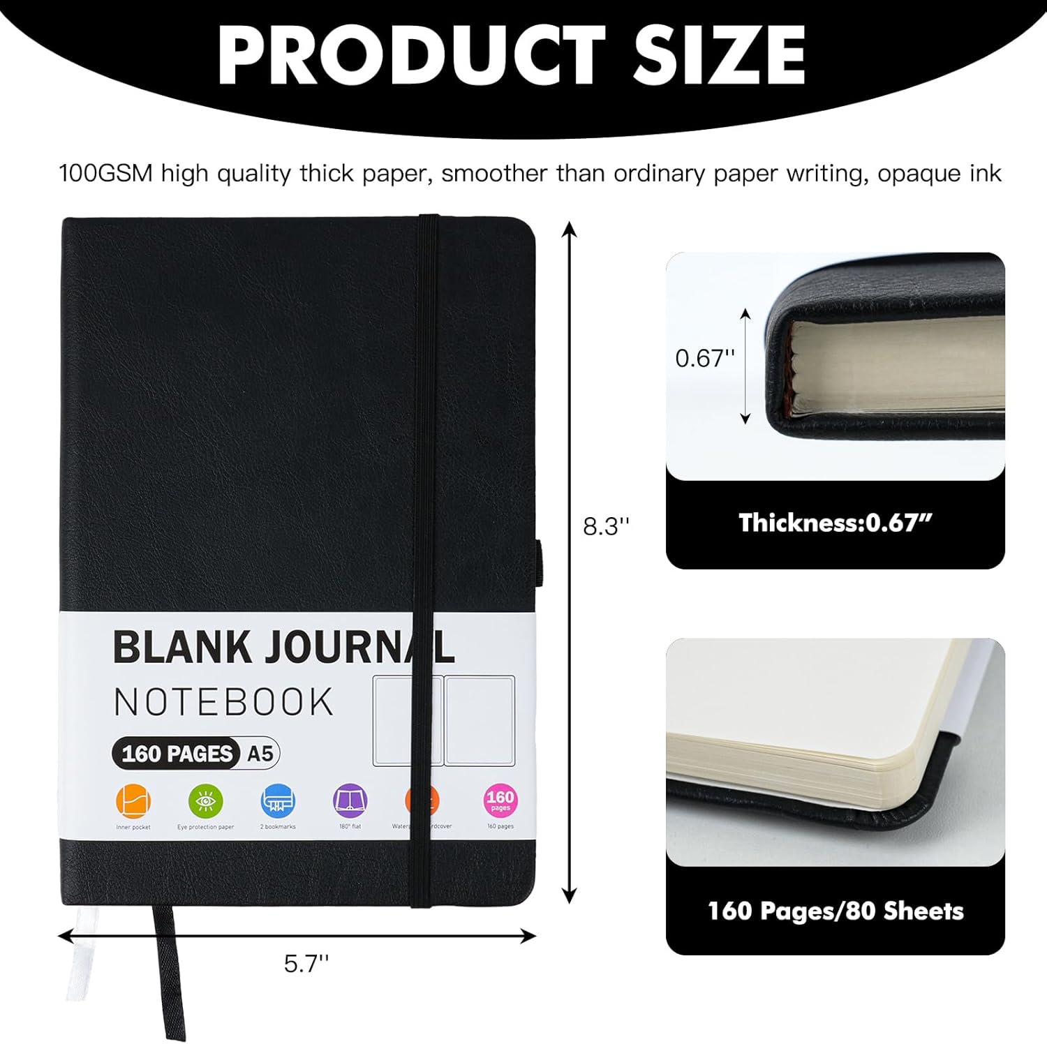 - 【Product Features】:This blank notebook contains a total of 160 pages/80 sheets, with an expansion pocket on the back with a pen holder and two bookmarks. 100gsm thick paper without ink leakage.
