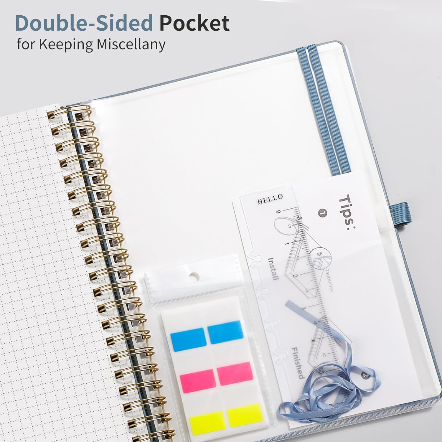 - Graph Journal Additional Features: The graph notebook includes sticky notes, 1 DIY ribbon bookmark, a double-sided PVC back pocket, 1 pen holder, 1 removable ruler, 2 Elastic bands, and a humane rounded arc corner design
