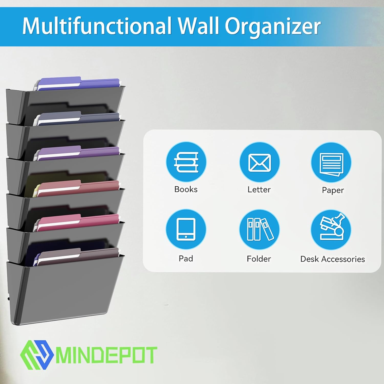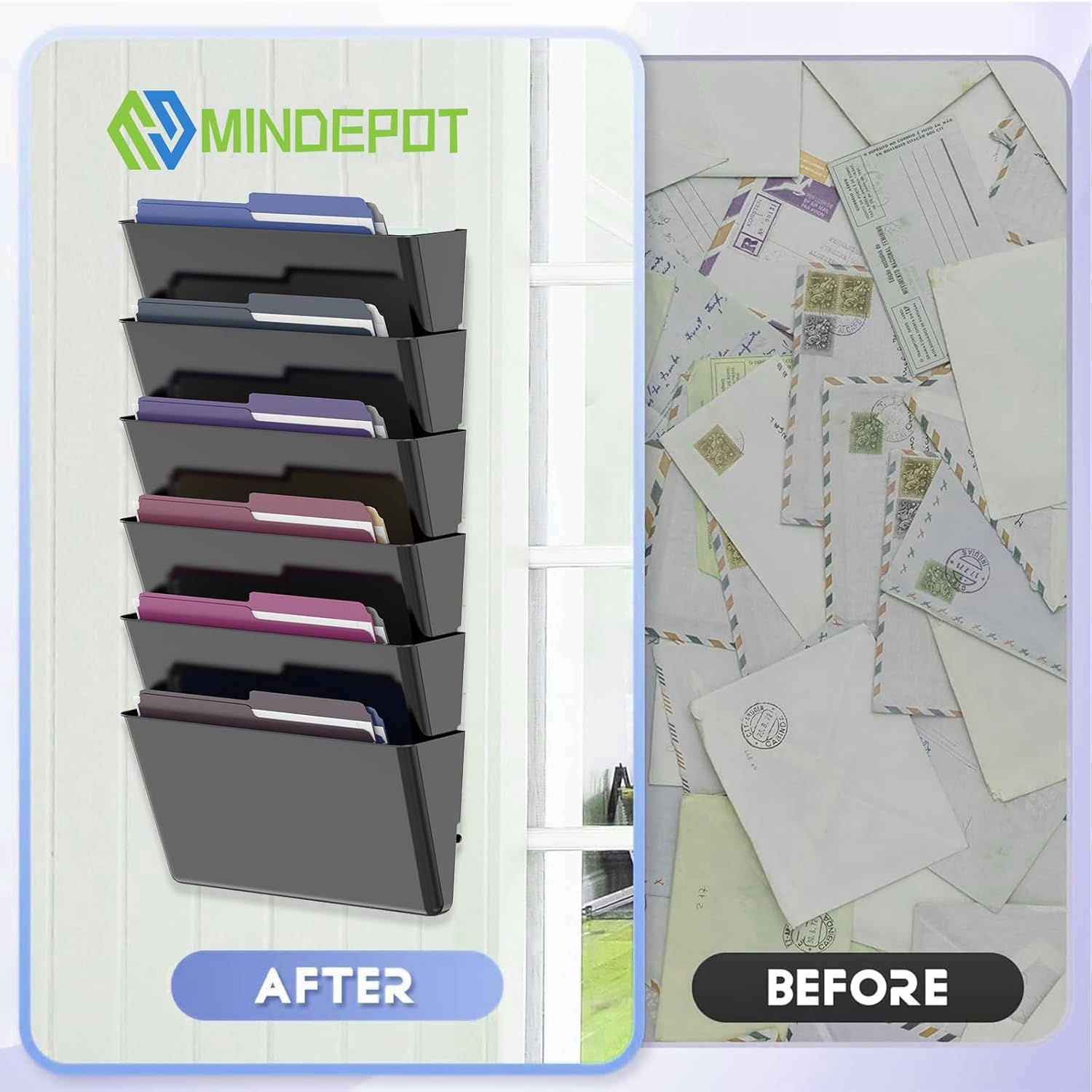 - 6 Acrylic Wall Pockets - MINDEPOT 6 pack Single wall file organizer can be used individually or stitched together to organize mail, folders, notebooks, magazines, literature, and other home/office supplies.