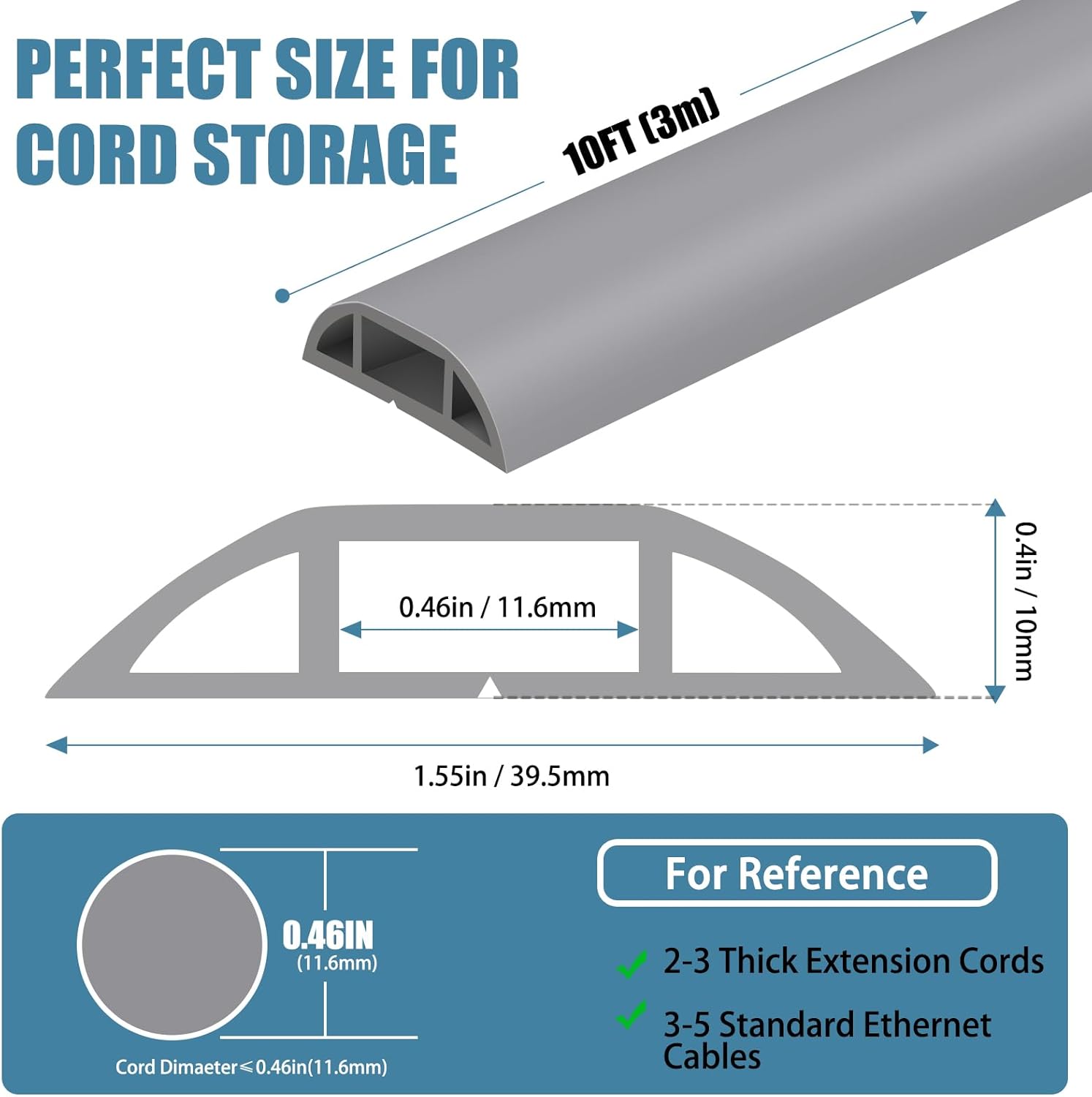 Floor Cord Covers for Wires 10FT Cable Hider Wire Coverr Self Adhesive Cord Hider Floor for Offices, Homes, Workshops, Warehouses Cable Cavity 0.51" W x 0.31" H