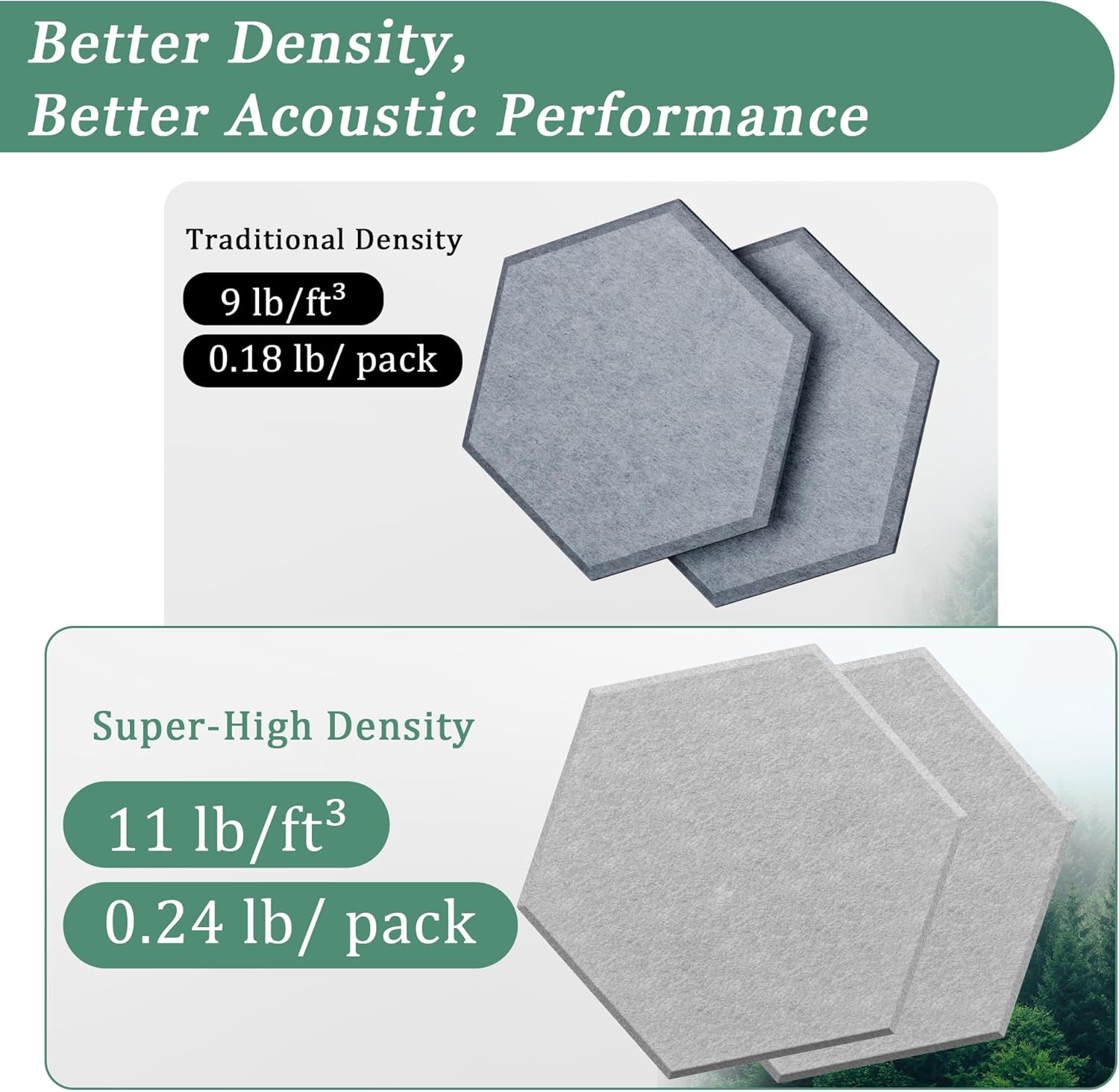- 【Exceptional Sound Absorption】Our sound-absorbing panels have a density of up to 420 lb/m³. Their unique structure and high density can significantly reduce reverb and echoes in a space. Each panel weighs 0.24 lbs, which helps reduce noise to some extent.