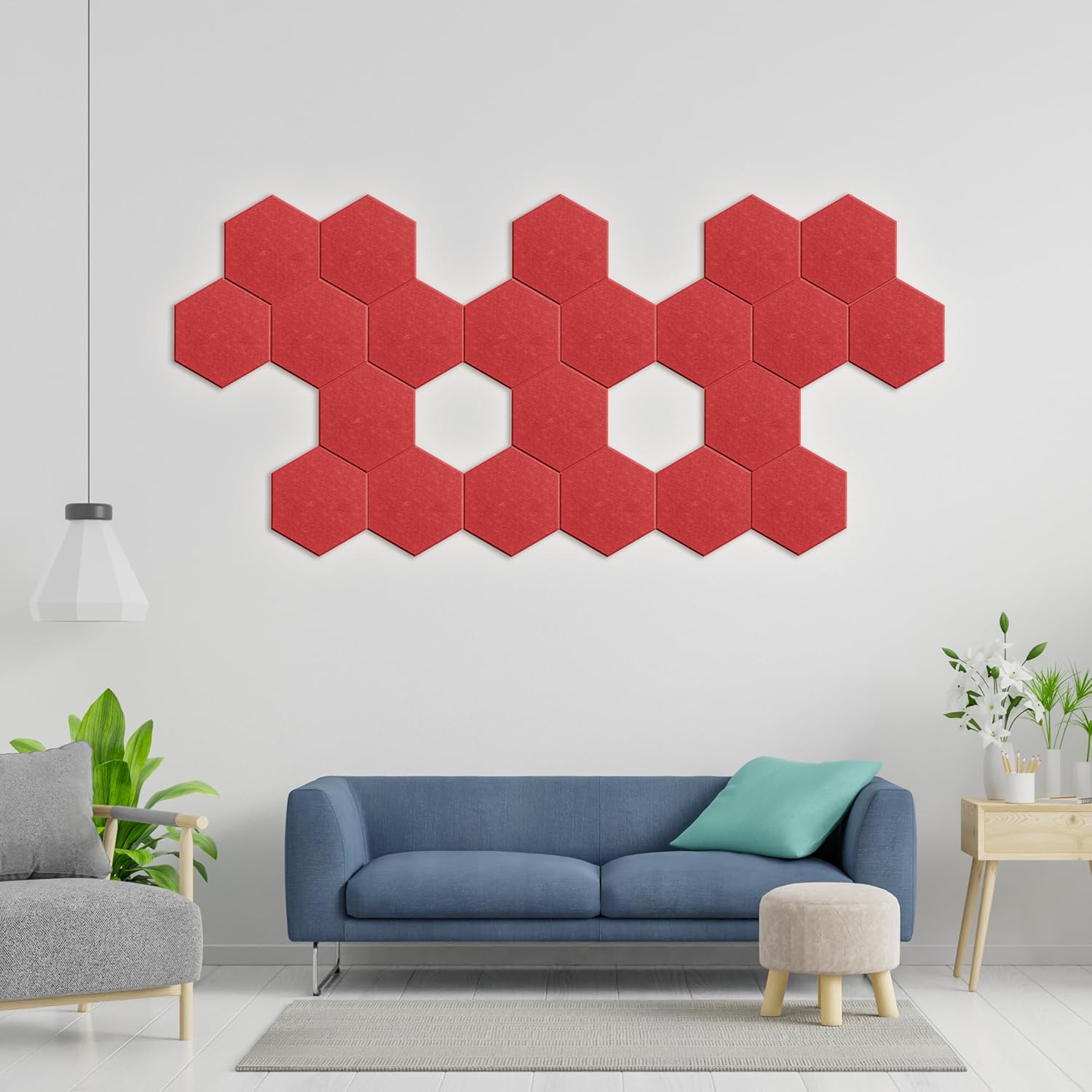 Hexagonal Acoustic Panels-12 Pack High-Density Sound Absorbing Panels 12"X10"X0.4" for Enhanced Noise Reduction, DIY Design, Idea for Studios, Offices, and Home Theaters(Cherry Red)