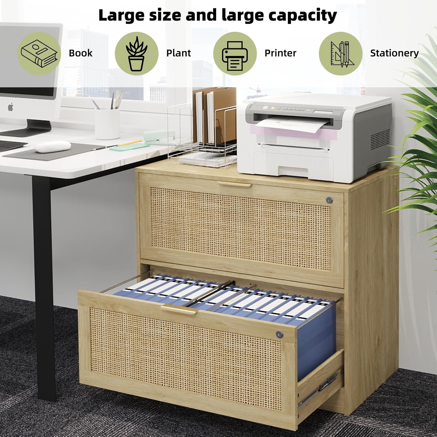 - 【Elegant Appearance Filing Cabinet】 Real Rattan design of the filing cabinet is beautiful, Simple line will be a good choice for your home, office, school, conference, etc. Wood lateral filing cabinet suitable for various interior decorations, and can also be used as home office storage cabinet or printer stand.Warm colors make your work environment less oppressive and more relaxed compared to black and white