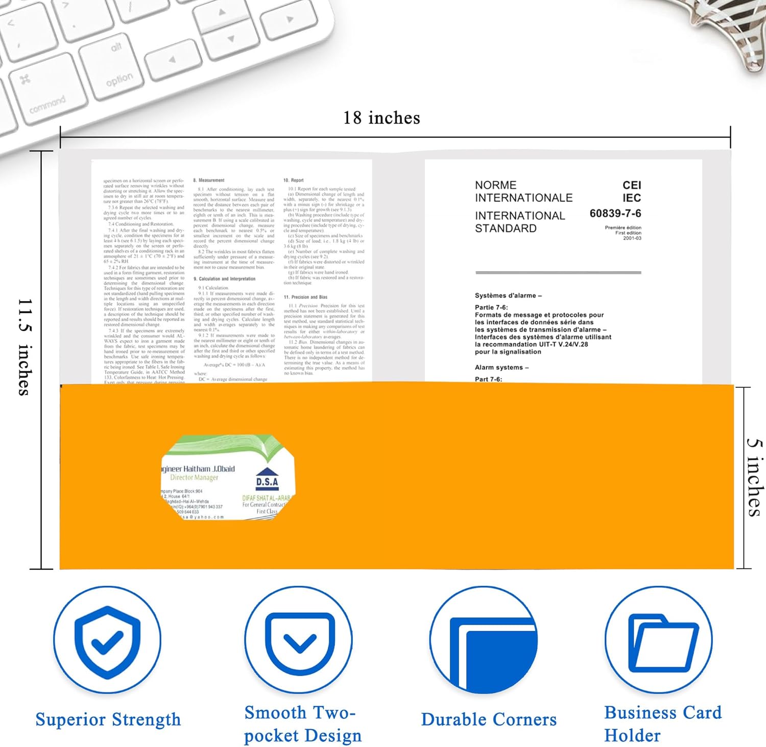 - Professional Design:Two pockets provide storage space for paper,brochures, and more,Each folders for documents measures 9" x 11.5",with two 5" pockets,holds (over 100) sheets of paper,and has a universal business card holder on the right pocket.