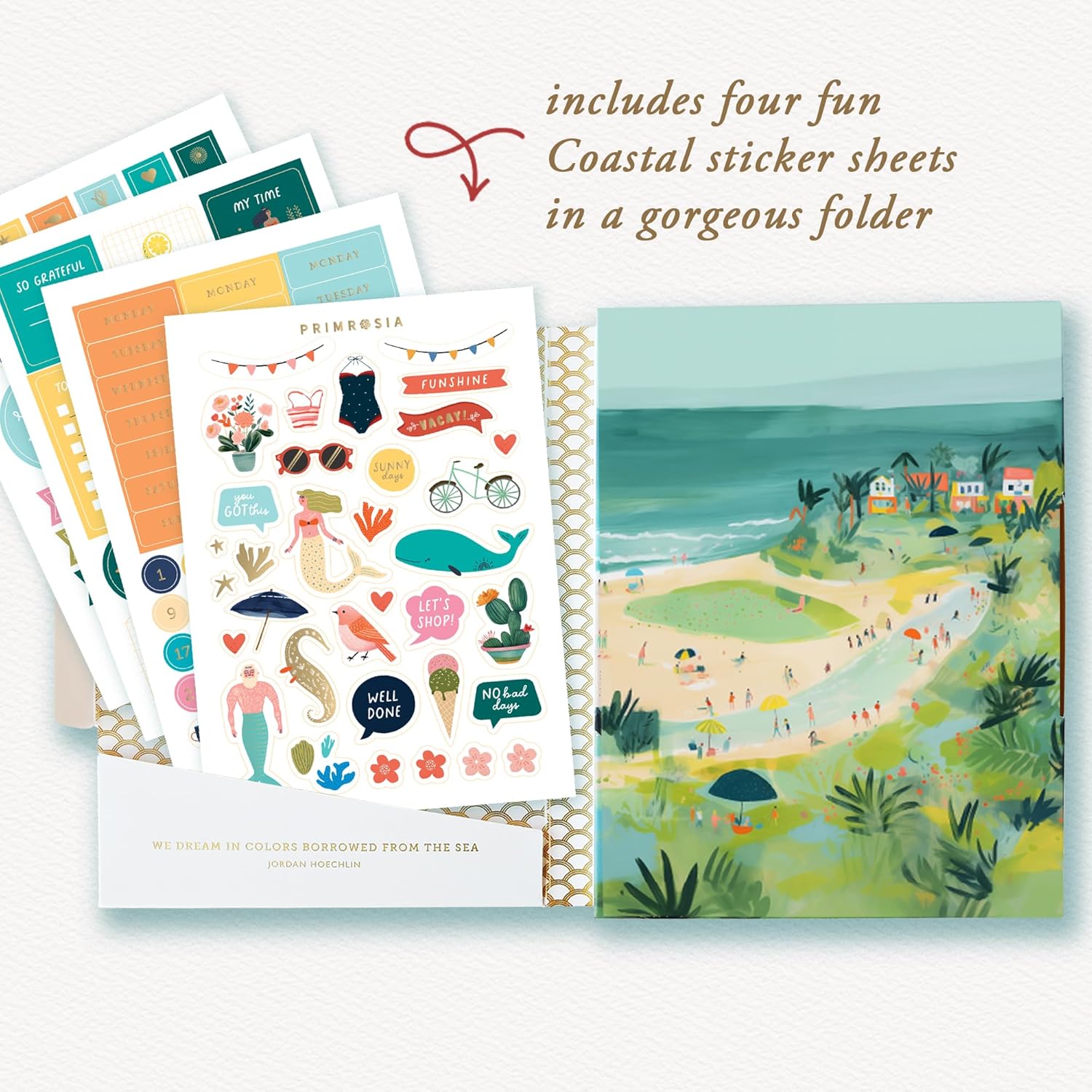 Primrosia 12 Dual Tip Watercolor Marker Pens - Fine Tip & Brush Tips, Professional Quality, 4 x Sticker Sheets, Blendable, Non-Toxic, Perfect for Calligraphy, Drawing & Coloring. (Coastal)