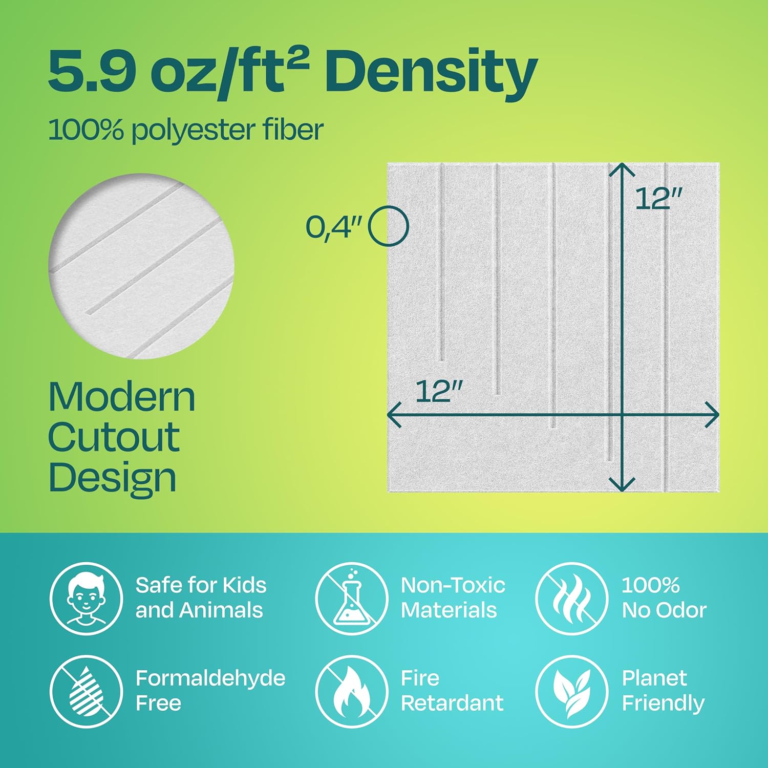 Acoustic Panels 12-Pack Soundproof Wall Panels 12"x12"x0.4" Decorative Sound Dampening for your Home, Office, Studio, Bedroom & More with Unique LineWave Carving [White]