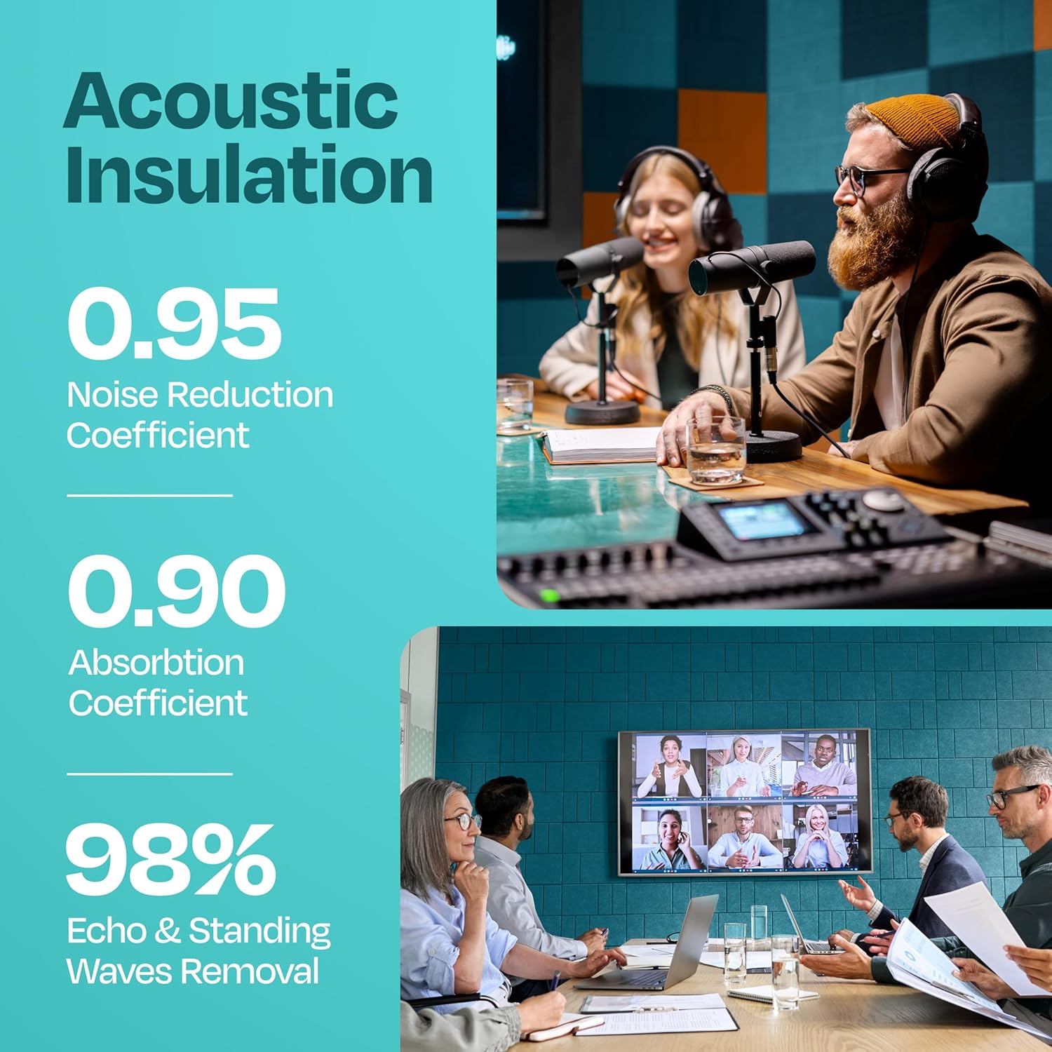 - [VERSATILE NOISE CONTROL FOR MULTIPLE ROOMS]: Forget about the old sound proof foam panels for walls. These sound absorbing panel solutions effectively reduce echoes and unwanted noise, providing superior acoustic comfort for various spaces.
