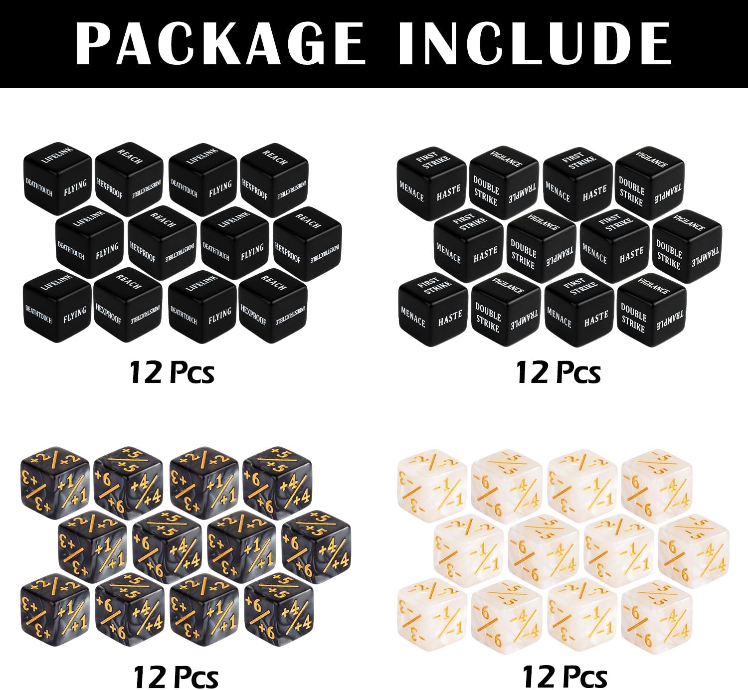 48 Pieces Abilities Keywords Counter Dice Black MTG Dice Counters Bulk Creature Stats Buff Tokens Dice Set for Magic The Gathering, MTG, TCG, Card Games Accessories