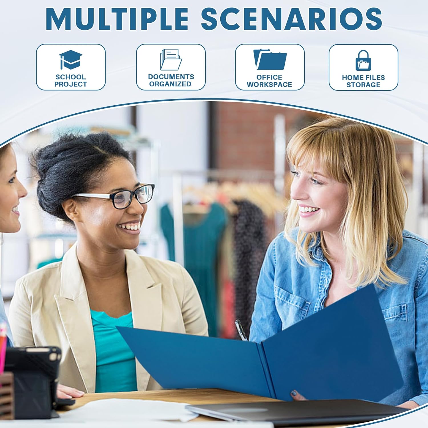 - TWO POCKET FOLDER SET: 75 Pack of blue folders, each folder with 2 inner pocket, 3 prongs and 2 business card slots. Crafted from texture and heavyweight paper stock, not easy to break and deform