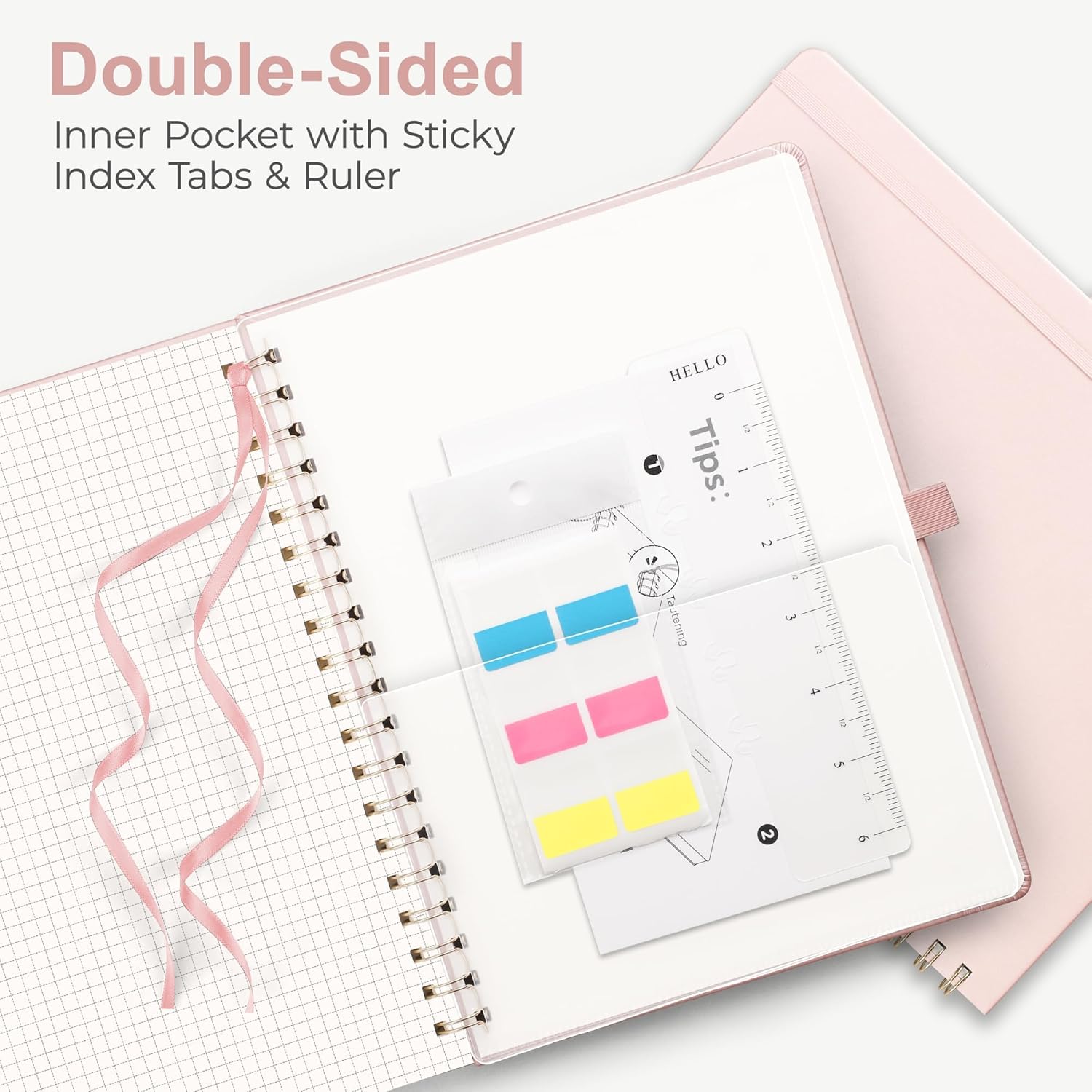 - GRAPH PAPER NOTEBOOK: RETTACY Graph Notebook comes in a A4 (8.5'' × 11'') size, 110 Pages, Leather Hardcover, Sturdy Twin-wire Spiral Bound, 5 mm grid writing space, 100 GSM Paper, Pen Holder, Elastic Closure Bands, Inner Pocket, Ribbon Bookmark, Lightweight Ruler, Sticky Index Tabs