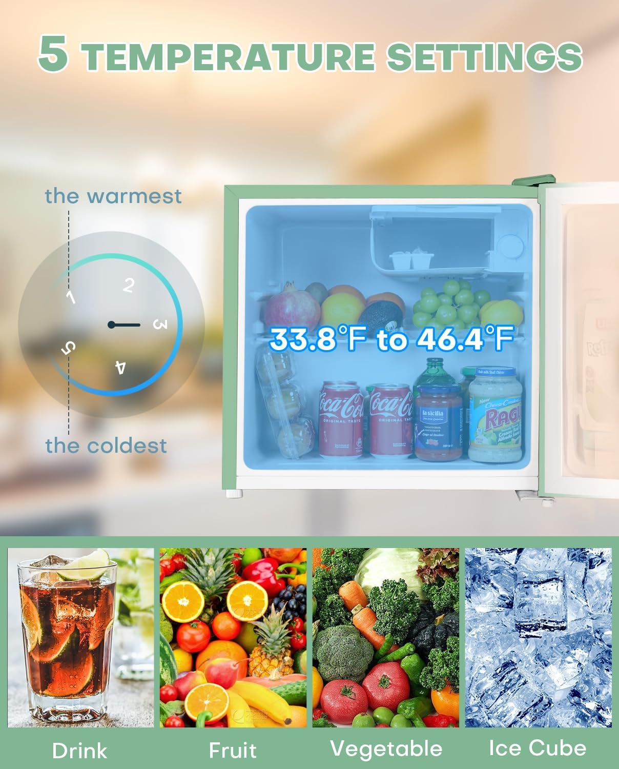 - Adjustable Temperatures: Ranges from 33.8Β° F to 46.4Β° F (Not for storing ice cream), the fridge offers 5 variable temperature settings per your need. Includes a compact freezer that allow you to make ice cubes, keep your food fresh and drinks chilled