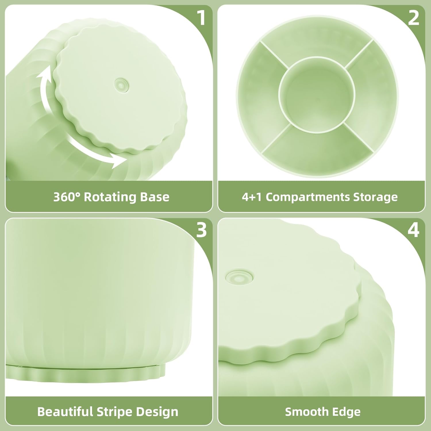Marbrasse Desk Organizer, 360-Degree Rotating Pen Pencil Holder, Desk Organizers and Accessories with 5 Compartments Pencil Organizer, Art Supply Storage Box Caddy for Office, Home(Green)