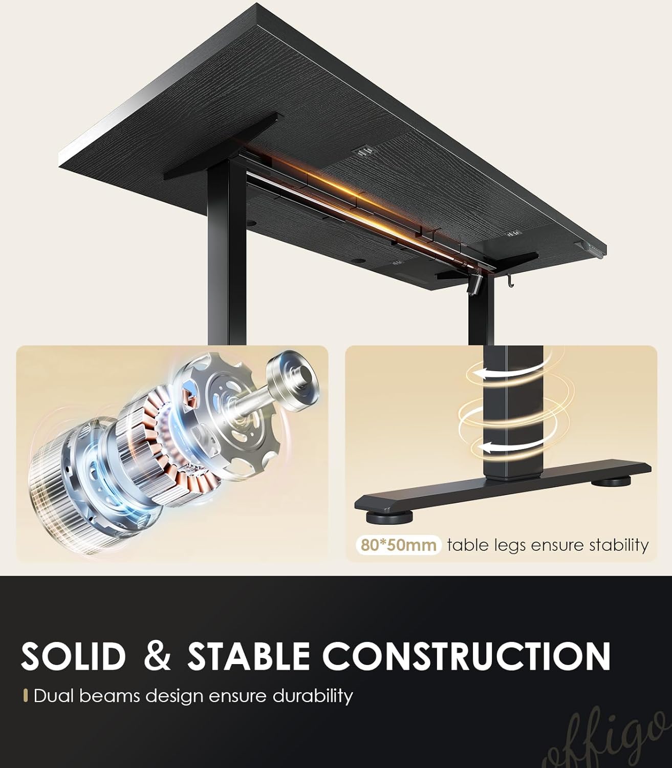 - Sturdy Construction: The sit stand desk features an industrial-grade steel frame that ensures excellent durability while supporting more weight. The dual beam structure design and 80*50mm table legs has better stability, making the lifting more smooth