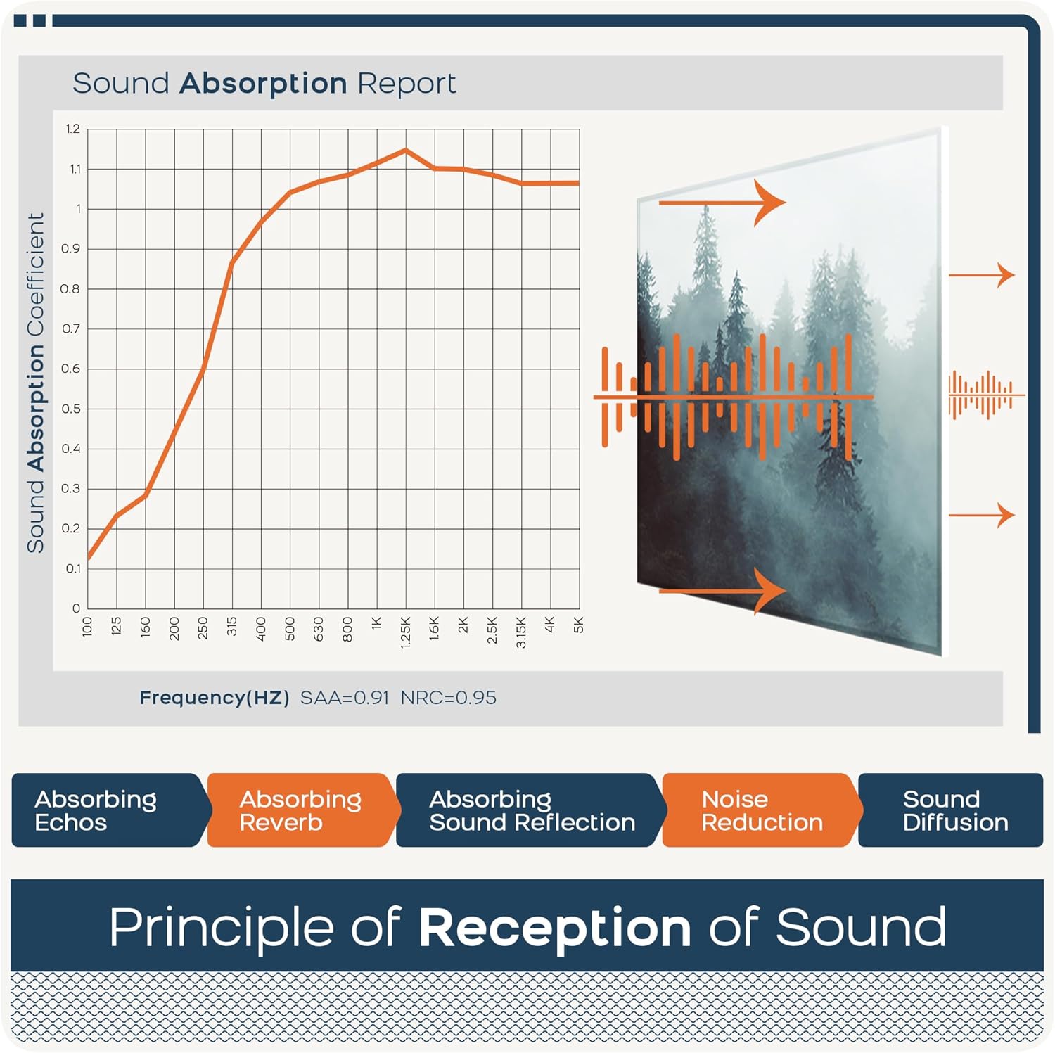 - 🌻【Sound Absorbing】 Our art acoustic panels which can easily and effectively reduce reverberation diffusion and echo, absorbing noise for walls. Effectively improve your sound environment and quality.Absorption Frequency: 150-20000HZ.It has better effect than acoustic foam