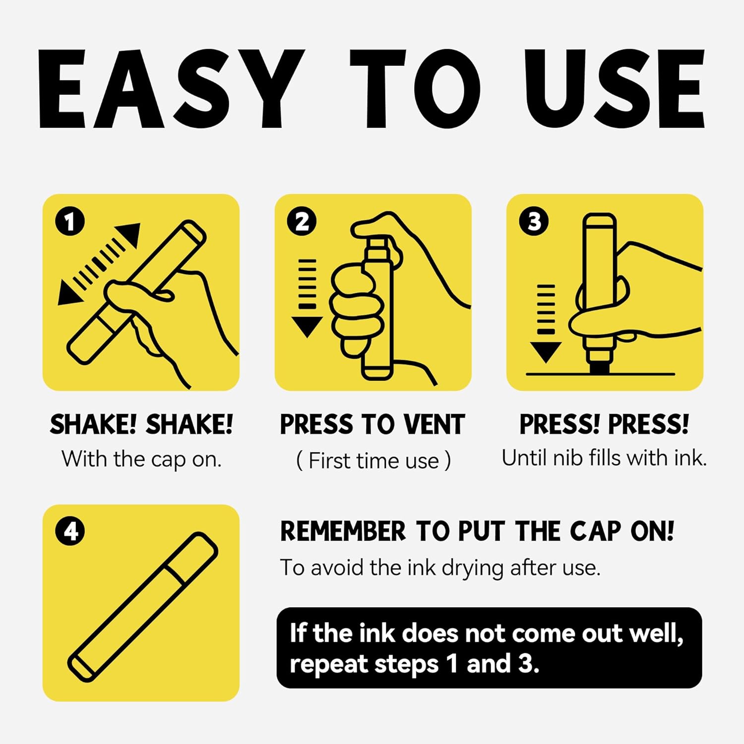 - 3-IN-1 NIB: (fine, medium, and jumbo) The thick tip permanent markers felt wide tip is not only equipped with 3-IN-1 nib, but also allows the jumbo marker paint pen to produce smooth and even ink