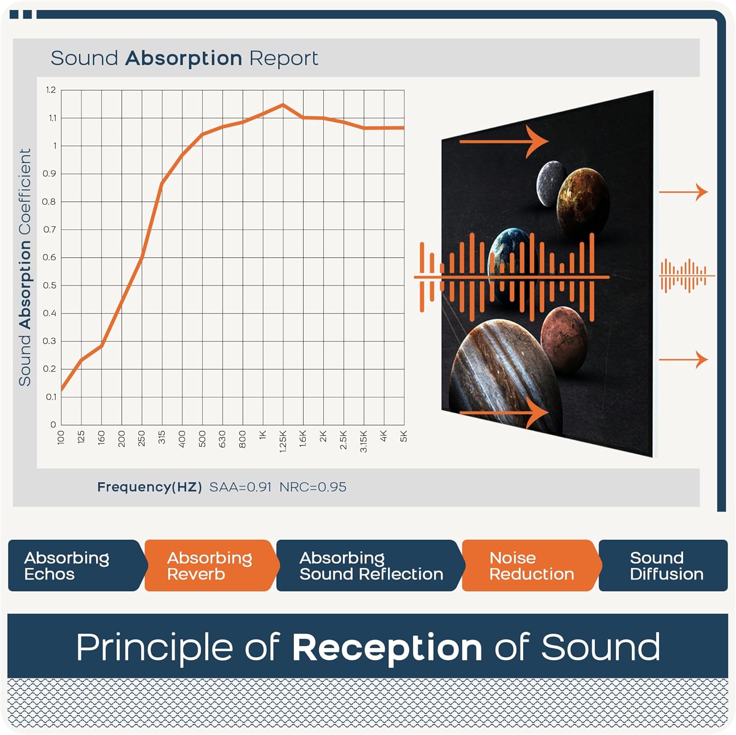 - 【Sound Absorbing】 Our art acoustic panels which can easily and effectively reduce reverberation diffusion and echo, absorbing noise for walls. Effectively improve your sound environment and quality.Absorption Frequency: 150-20000HZ.It has better effect than acoustic foam