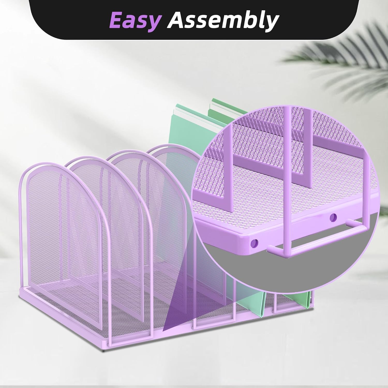 SUPEASY File Organizer 5-Section Mesh Desk Organizer, Upright File Organizer Desktop Organizer File Sorter, File Folder Holder for Office Supplies, Purple
