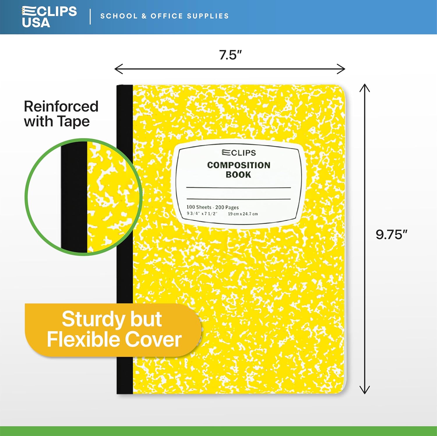 E-CLIPS USA Composition Notebooks, (6 Pack), Wide Ruled Composition Notebook, Marble Composition Notebook, 100 sheets, 200 Pages (6, Yellow)