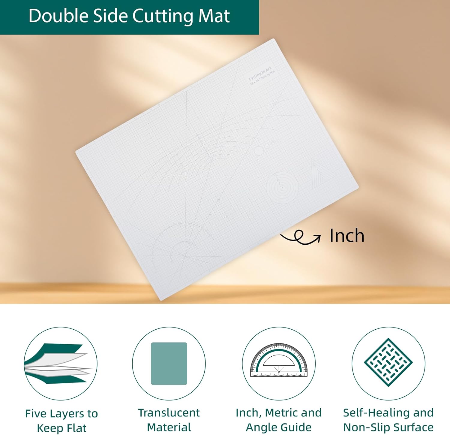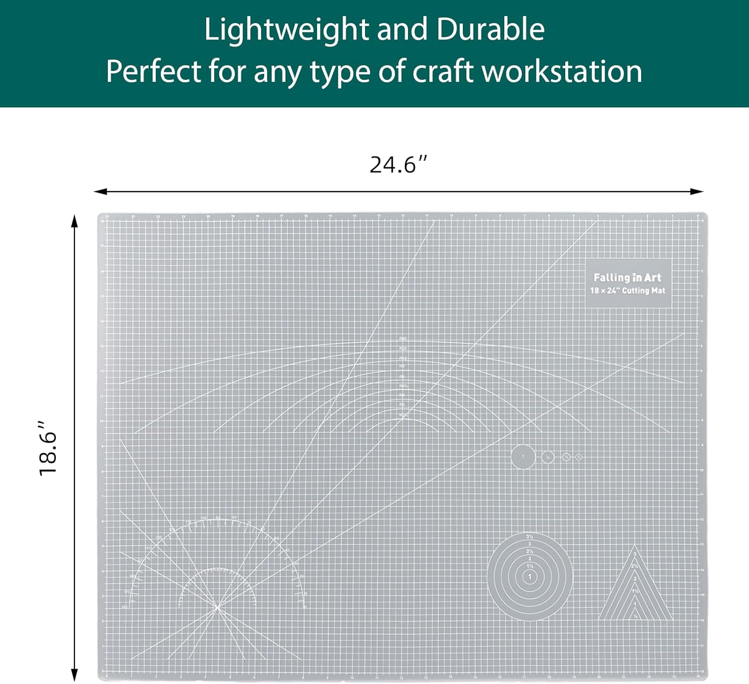 - Precise Cutting: Falling in Art double-sided cutting mat is printed with inches, metric grid lines, radius, and different angles. With easy-to-read and clear gridlines on both sides, it ensures accurate cuts for all your crafting needs