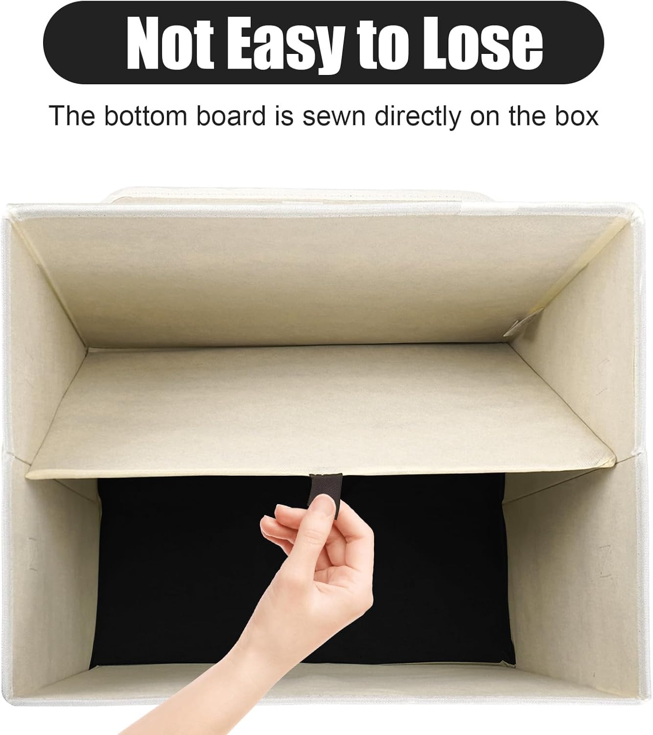 - 【Premium Quality】 -These fabric storage bins with lids are made of durable and breathable linen fabric with the high quality cardboard on the sides and bottom. The fabric is eco-friendly and durable, with no odor. The inner 2.2mm thick cardboard maintains fabric storage box shape and structural integrity. Both handles are sewn through cardboard to make this decorative storage boxes rigid enough to hold a heavy load.