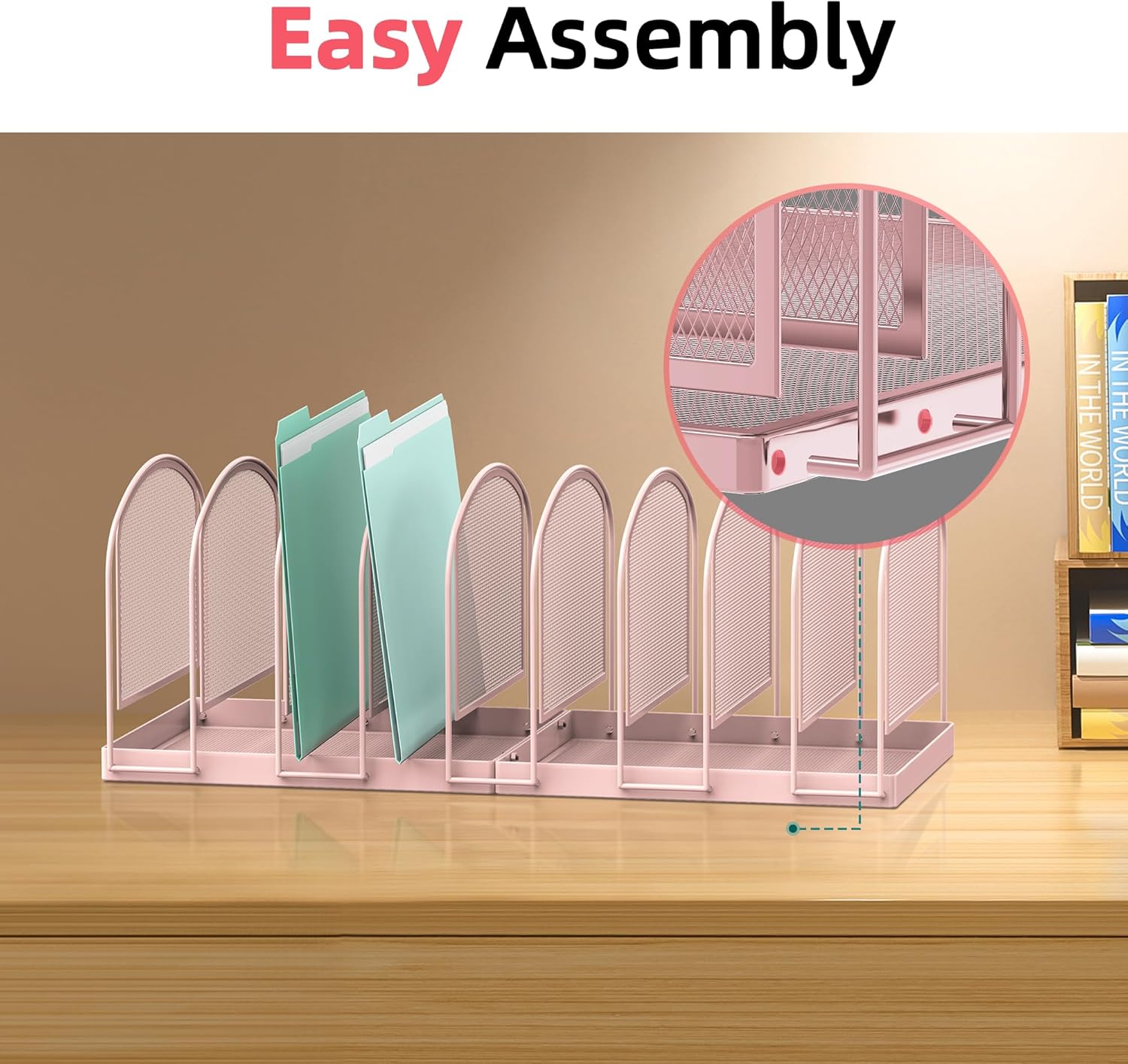 SUPEASY File Organizer 9-Section Mesh Desk Organizer, Upright File Organizer Desktop Organizer File Sorter, File Folder Holder for Office Supplies, Pink