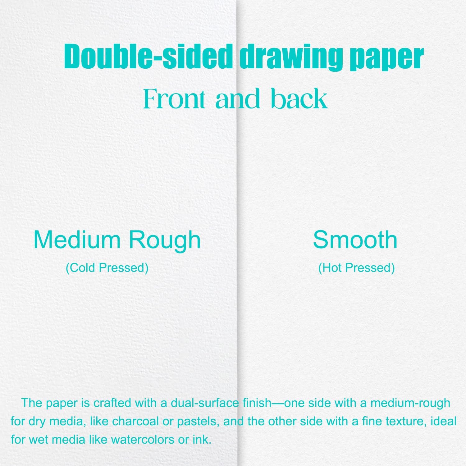 - Dual-Sided Texture: The front side features a medium rough texture that preserves the smudge effect of pigments, while the back side has a fine texture, ideal for various types of paintings;