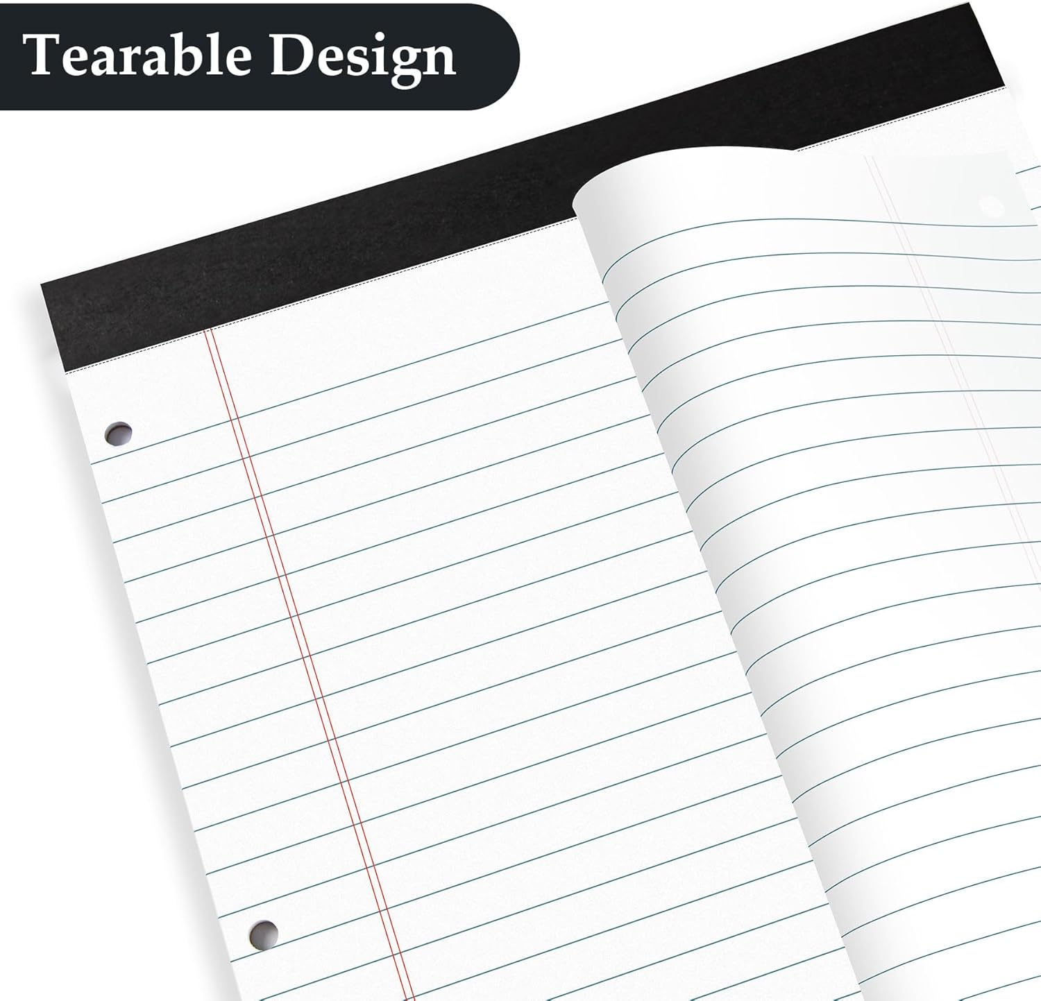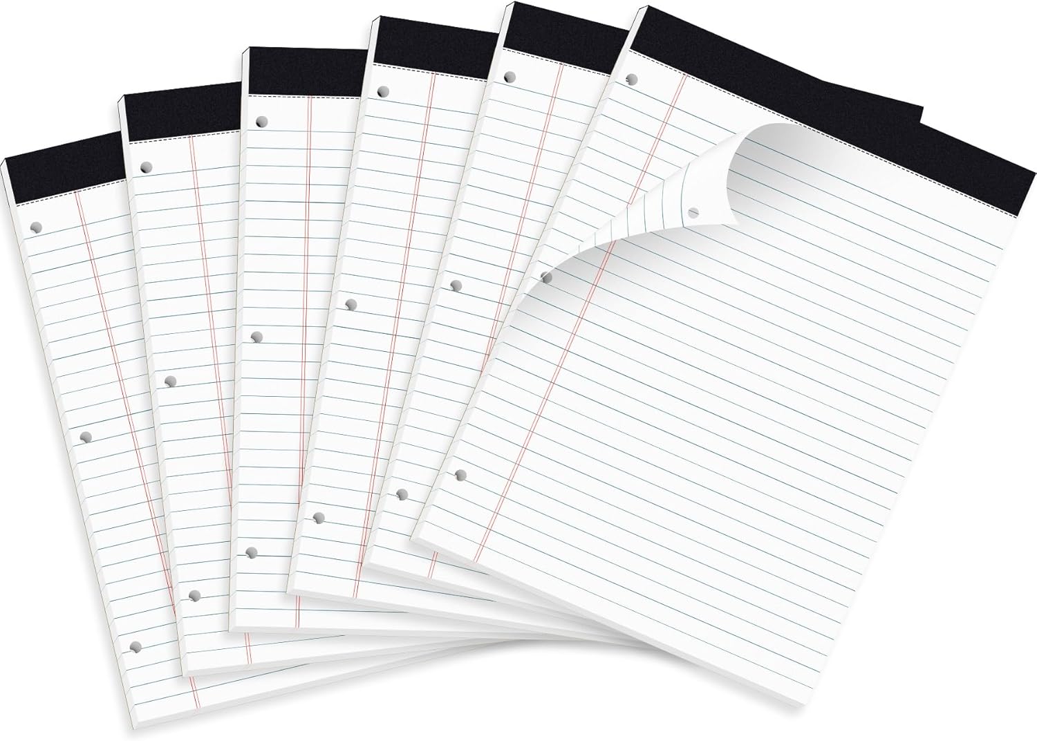 HAUTOCO 6 Pack 8.5 x 11 Legal Pads White Wide Ruled Notepads Perforated Writing Pads, 30 Sheets Per Notepad, 3-Hole Punched Paper, Writing Note Pads for School, Home, Office, Business