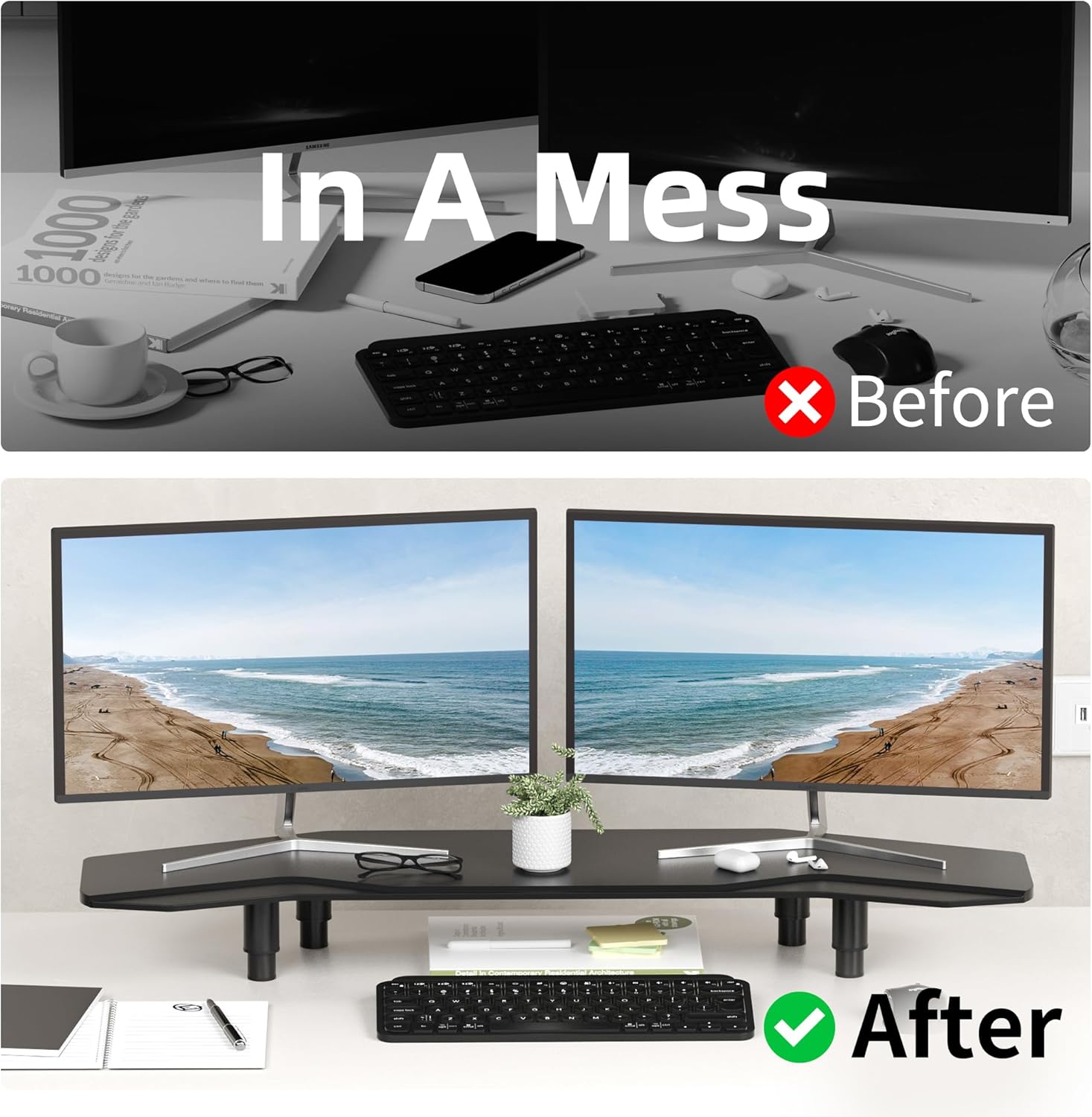- Sturdy and Durable Construction: The panel measures 39.3 inches Γ 11.8 Γ 0.47inches, offering ample space for your monitor or laptop.Made from high-quality wood with a sleek black finish, this stand ensures stable and long-lasting support for your monitor or laptop. Its robust construction is designed for durability.