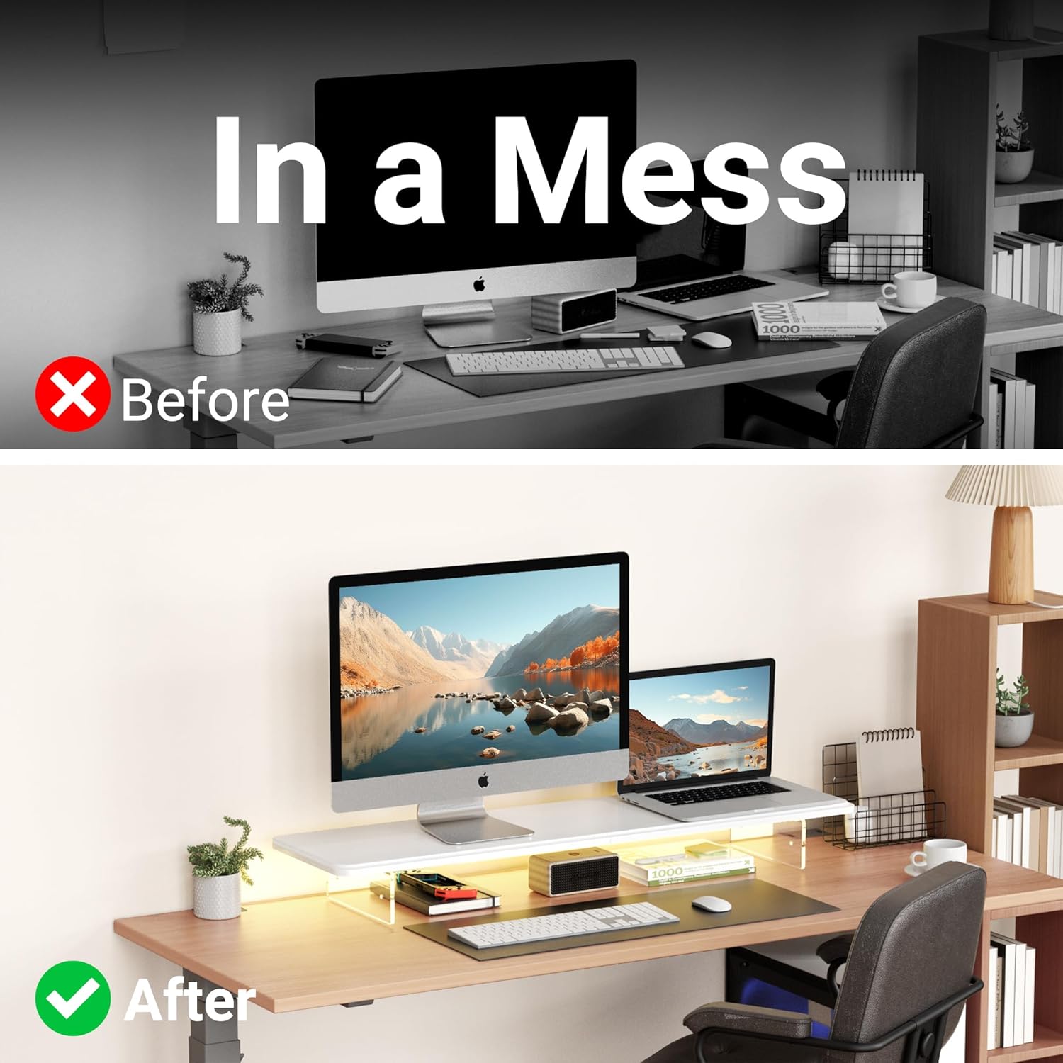 - 【Colorful Lighting with 24 Color Options】Our monitor stand features a 1-meter LED light strip that supports 24 colors and 4 lighting effects. Easily adjust the color and mode to create the perfect work or entertainment ambiance.