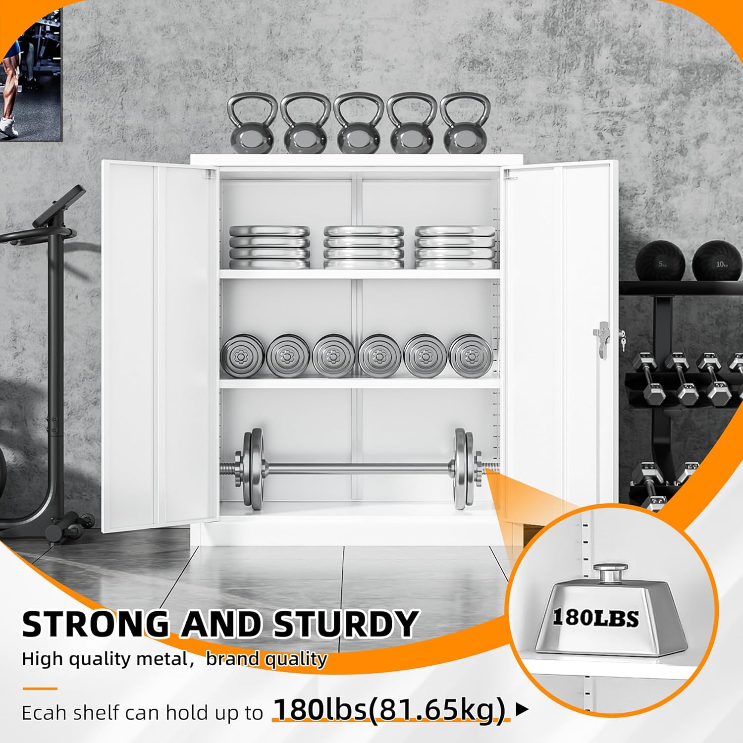 - 『WEIGHT CAPACITY』Sturdy and reliable - each shelve in this metal cabinet can hold up to 180lbs. With a heavy duty metal frame, these shelves will stabilize their contents and protect them. Whether you want to store office files, garage tools, or other large and heavy items, it's no problem.