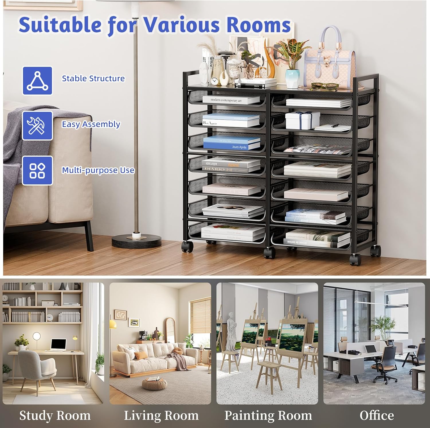 - High Quality Material: This mobile file rack cart is made of sturdy and durable thickened metal frame and high quality metal mesh drawer, coated with antirust coating, waterproof and rustproof function, sturdy structure and durable