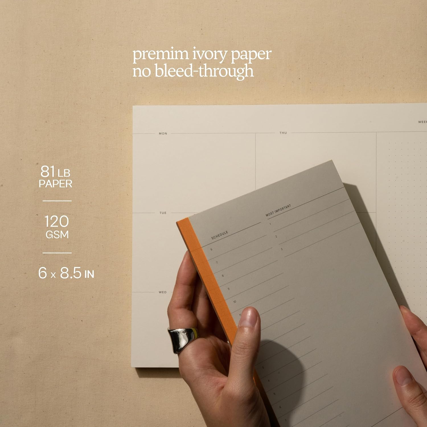 Daily and Weekly To-Do List Notepad – Desk Pad for Work and Study, Orange, 8x6 Inches