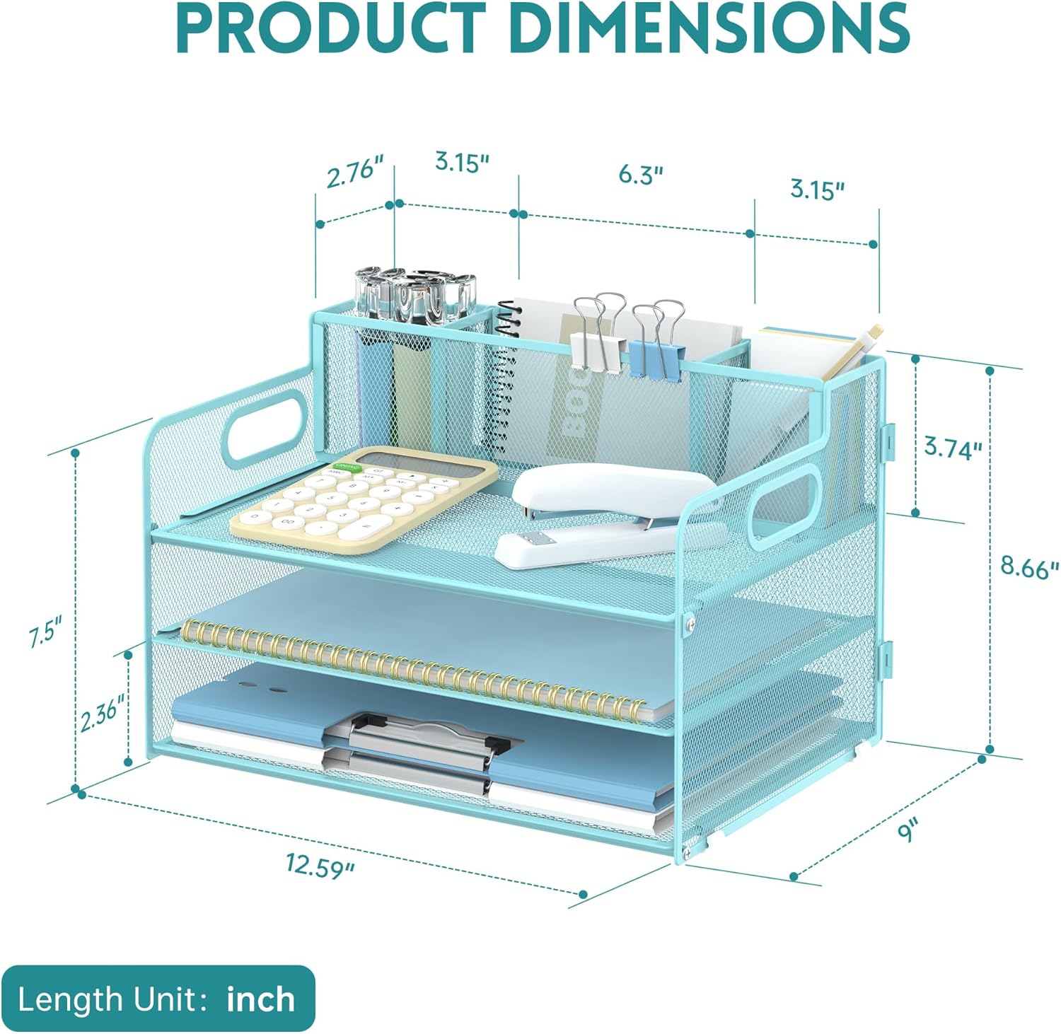 - 3 Trays & 3 Pen Holders: Supeasy blue desk organizers are multifunctional. This paper organizer provides 3 trays for organizing papers, letters, folders, files, books, mails, documents, etc. The pen holders on the top help organize your various pens, small notebooks, scissors and stapler. Our file organizer gives you large capacity for desk organization, keeping your office clean and tidy.