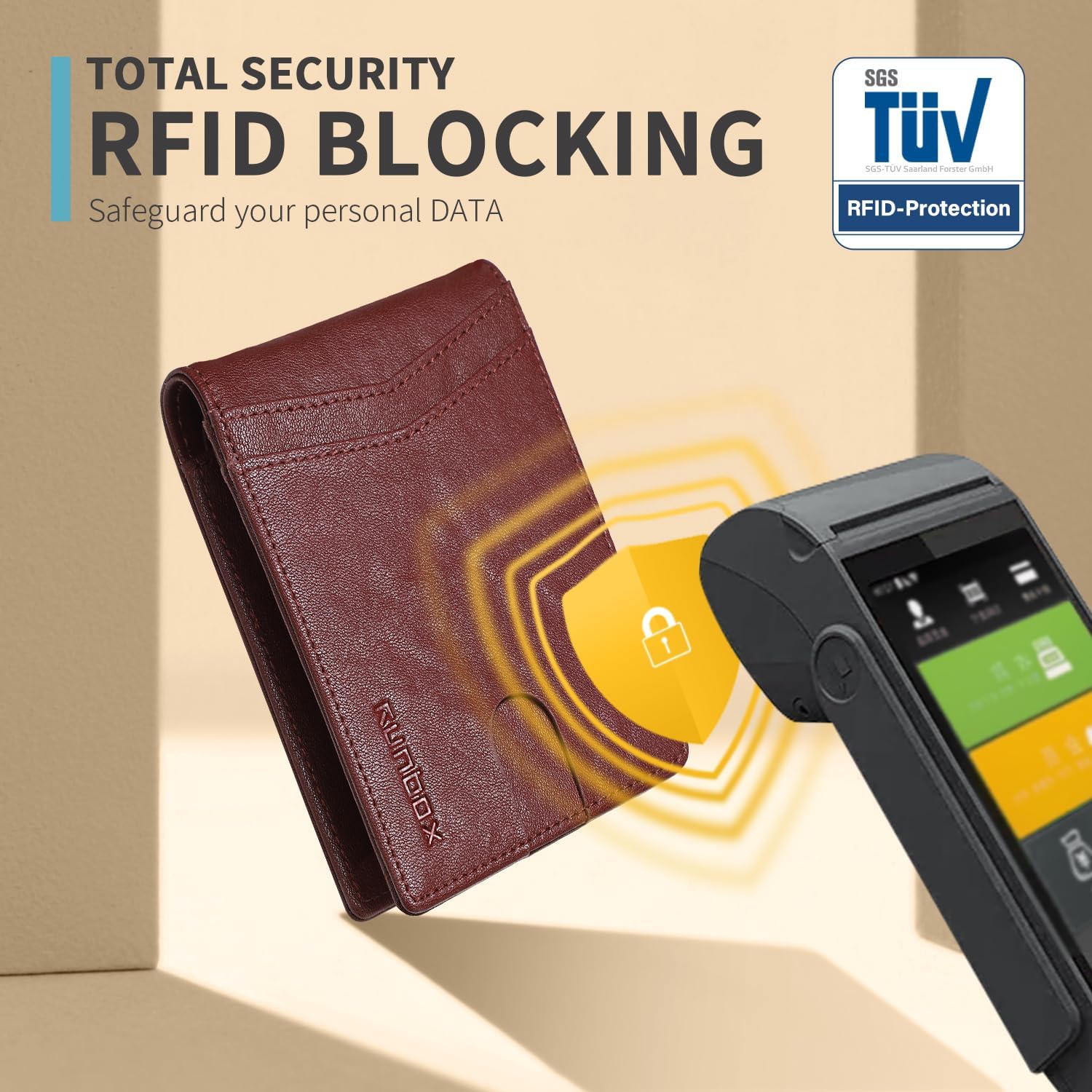 RUNBOX Wallet for Men Slim Rfid Leather 2 ID Window With Gift Box