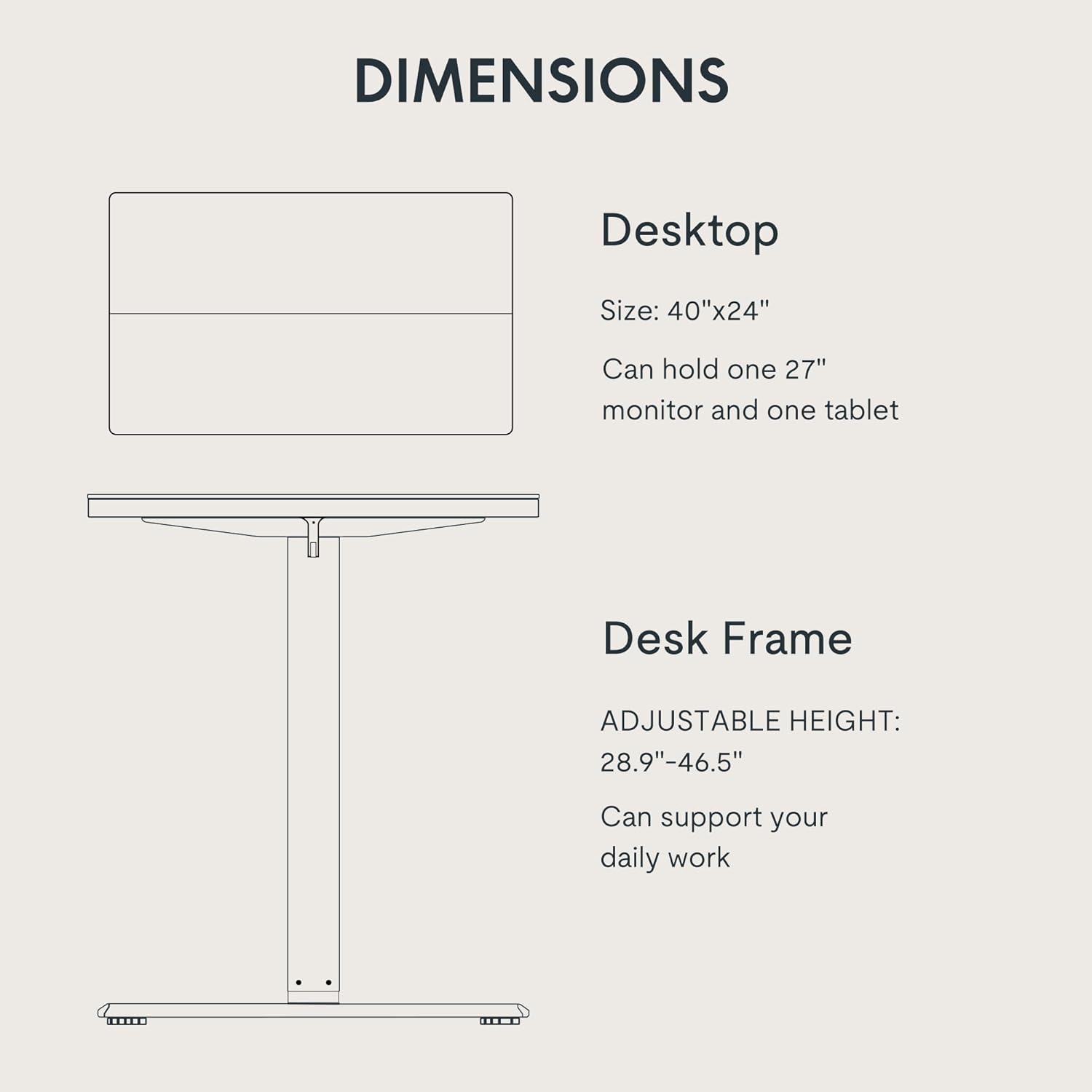 - ERGONOMIC & SPACE-SAVING: The 40" x 24" desktop creates a comfortable home office setup while maintaining a compact footprint, perfect for small spaces.