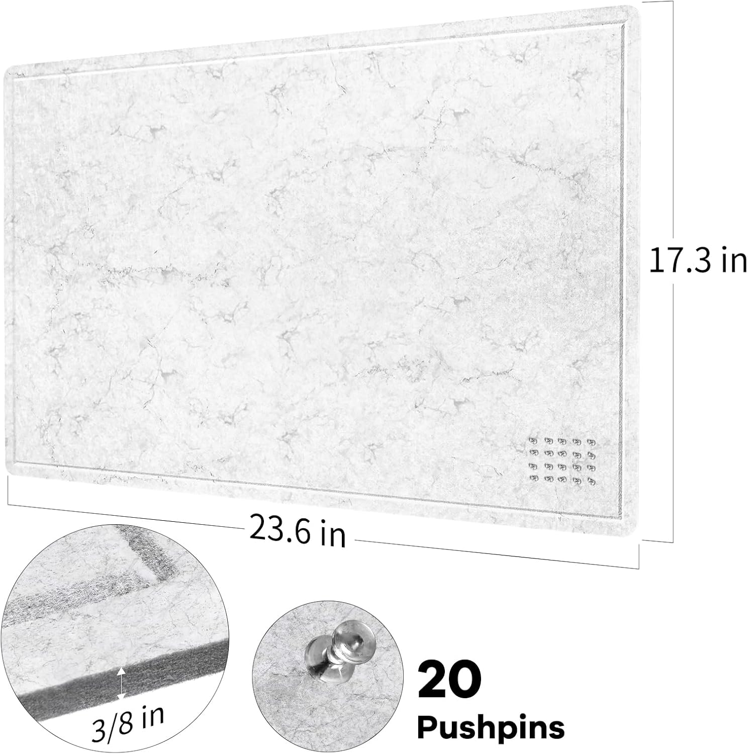 Bulletin Board, 24 x 18 Inches Felt Decorative Pin Board, Cork Alternative for Wall, Foldable Photo Self-Adhesive Vision Mood Board With 20 Pushpins - Marble White