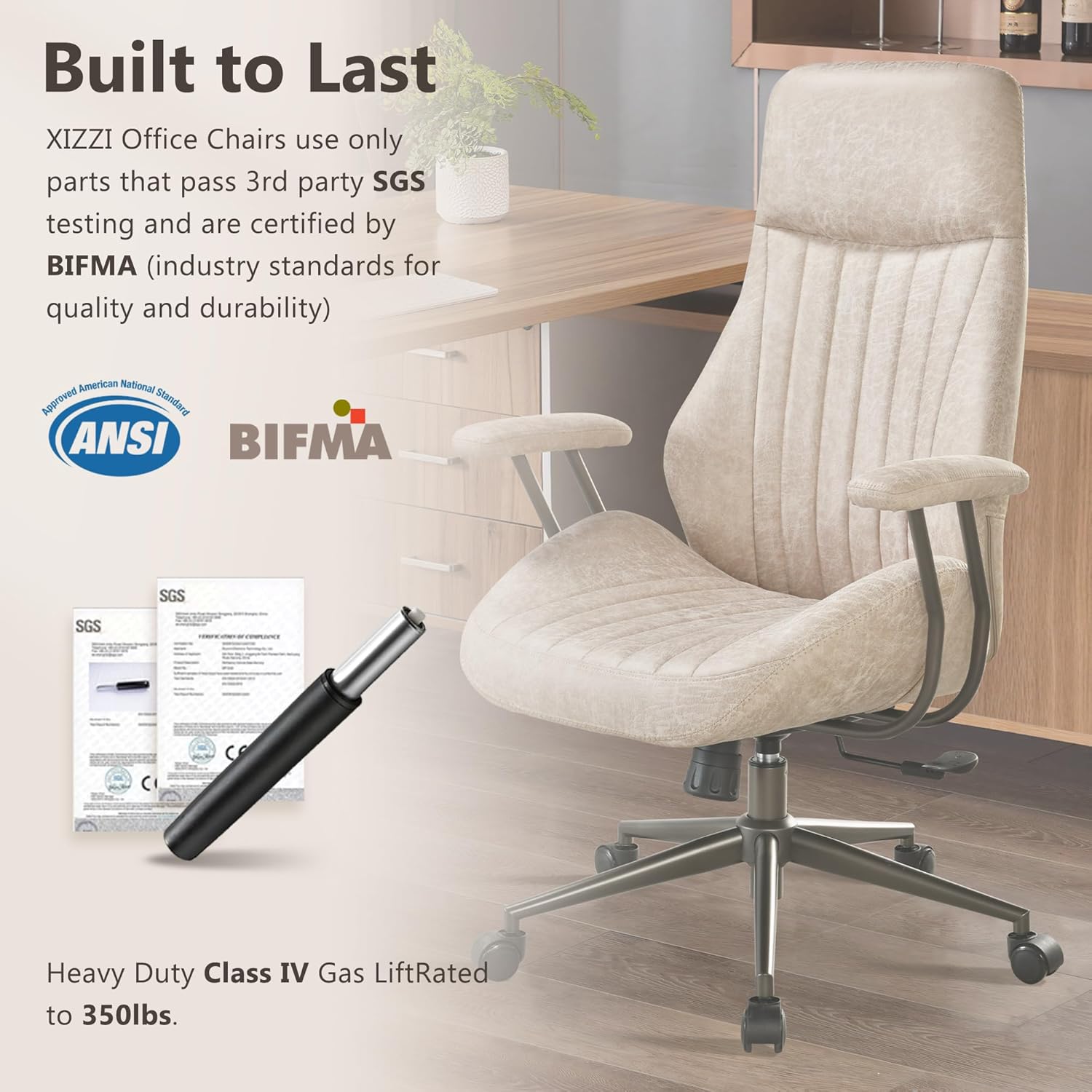 Mid Century Modren Office Chair - High Back Swivel Executive Chair with Lumbar Support,Ergonomic Computer Desk Chair with Wheels,Faux Lether Suede Task Chair,350lbs (Beige, High Back)