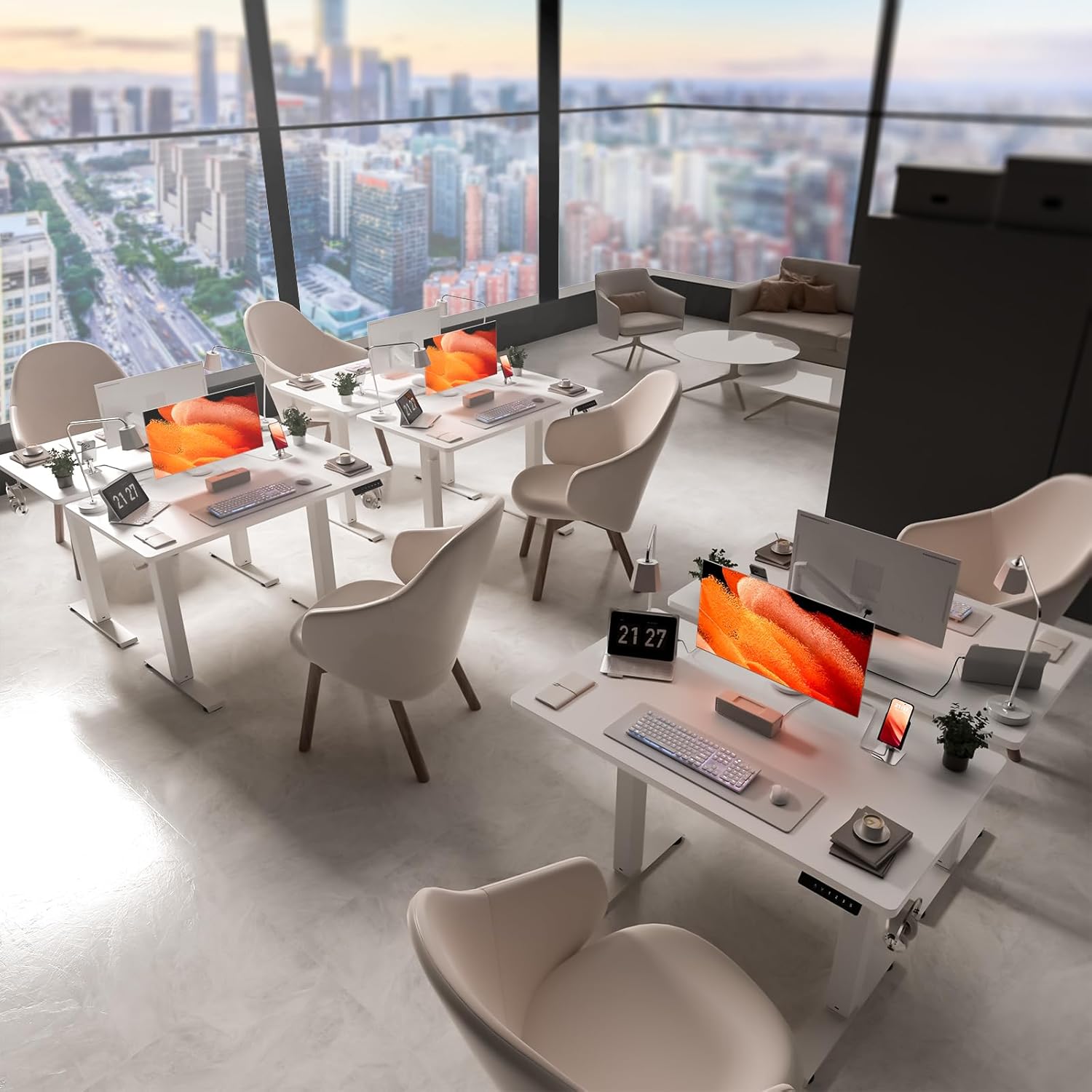 - Smooth Height Adjustment: Freely select electric standing desk height, from 27" to 46.5". Save your favorite three settings and smoothly switch between them