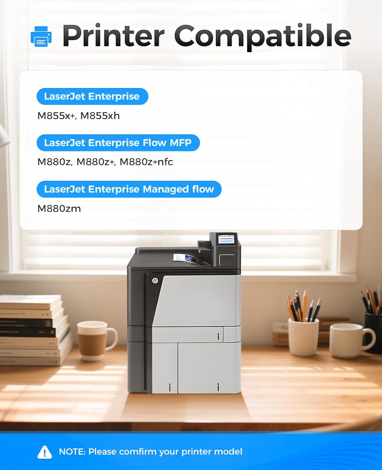 - Compatible Devices : Compatible for HP Color LaserJet Enterprise M855x+/M855xh/M855dh/HP Color LaserJet Enterprise Flow MFP M880z, M880z+ Series Printer. Compatible for HP Color LaserJet Enterprise M855x+/M855xh/M855dh/HP Color LaserJet Enterprise Flow MFP M880z, M880z+ Series Printer.
