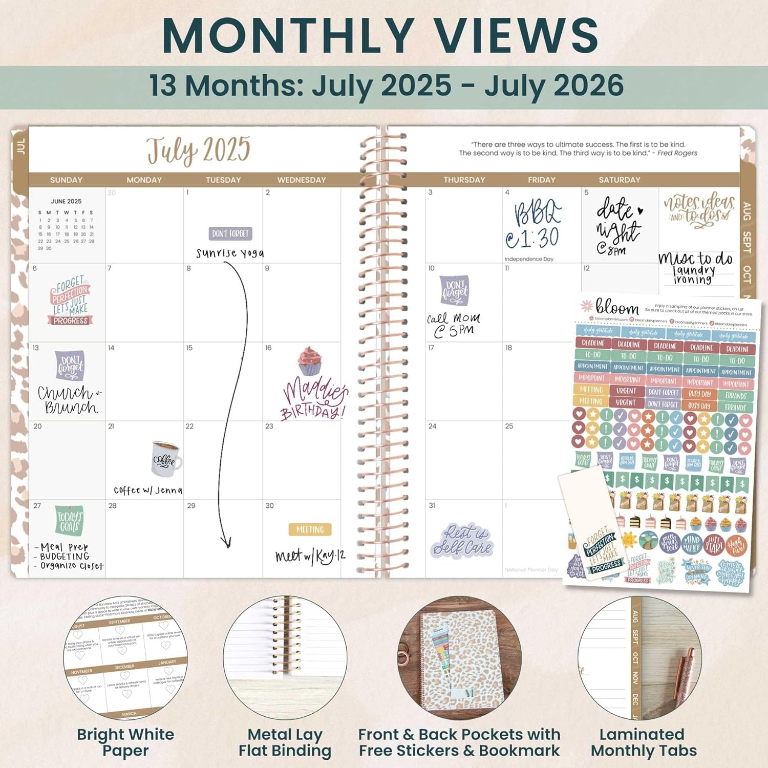 bloom daily planners 8.5" x 11" Academic Planner 2025-2026 (July 2025 - July 2026) - Weekly & Monthly Dated Agenda Organizer with Stickers & Tabs - Tan Leopard