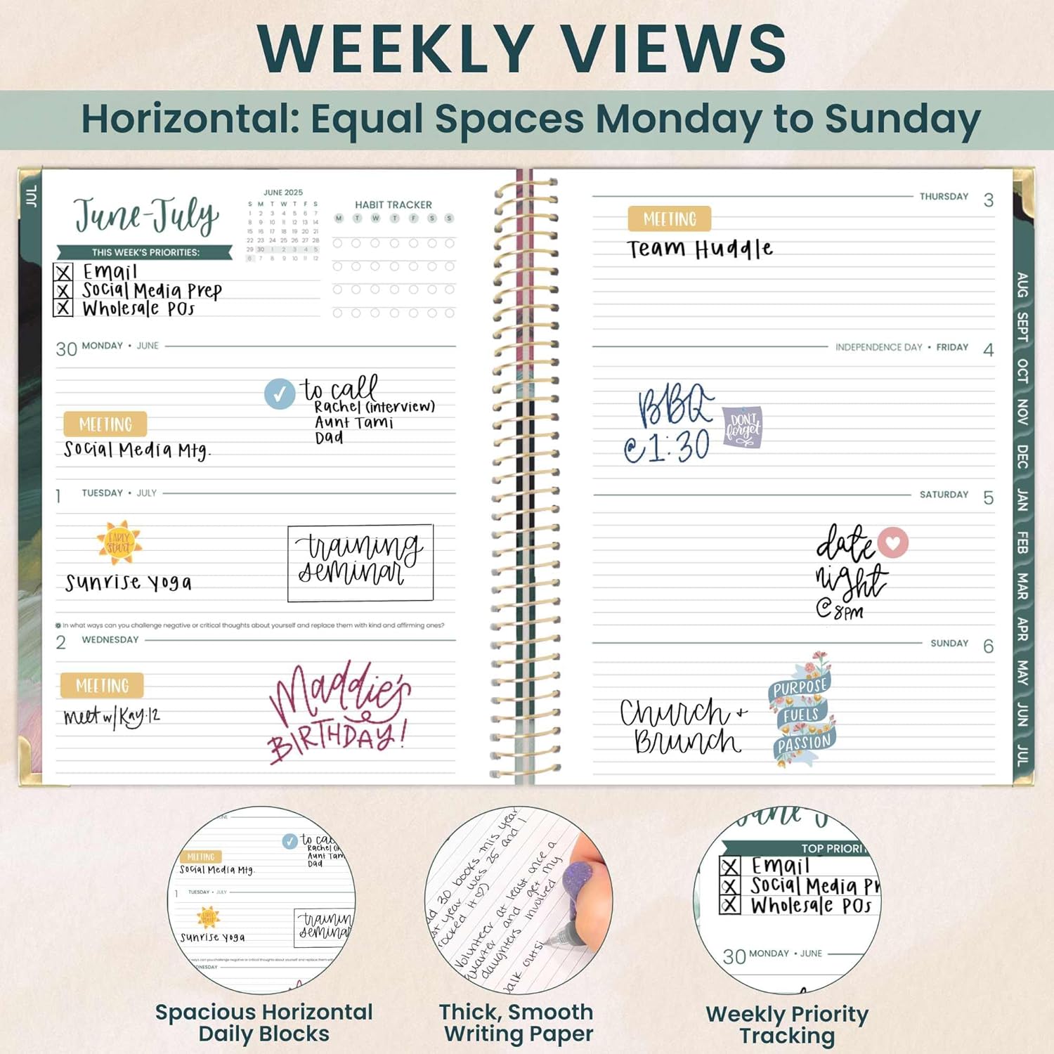 - LARGE 8.5β x 11β HARDCOVER PLANNER FOR WEEKLY & MONTHLY PLANNING: This 2025-2026 academic planner (July 2025 - July 2026) features spacious monthly overviews and horizontal weekly spreads. Weekly pages include priorities & habit tracking.