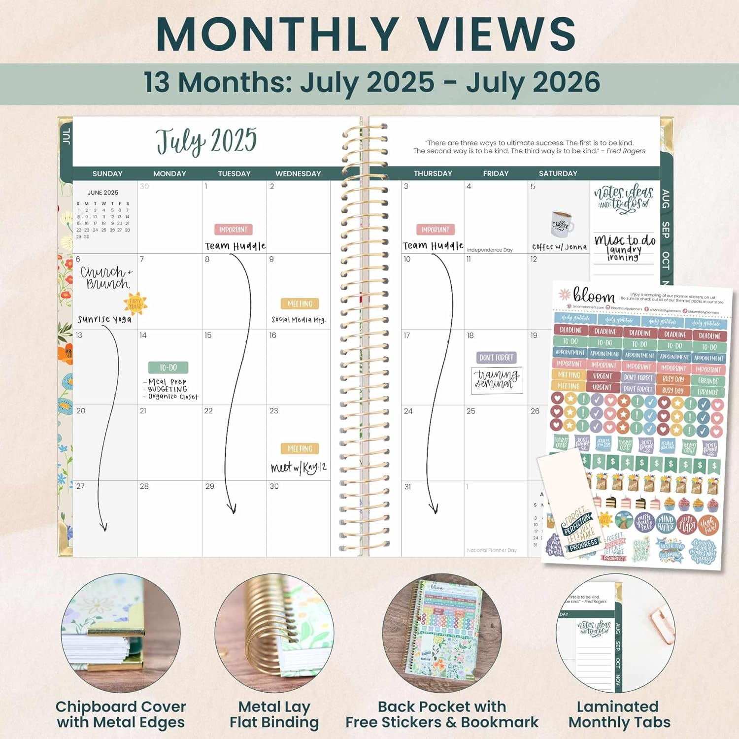 - 5.5β x 8.25" PLANNER WITH MONTHLY & WEEKLY PLANNING: This academic planner runs from July 2025 to July 2026 and features spacious monthly overviews and horizontal weekly spreads. Perfectly sized to throw in a purse or bag!