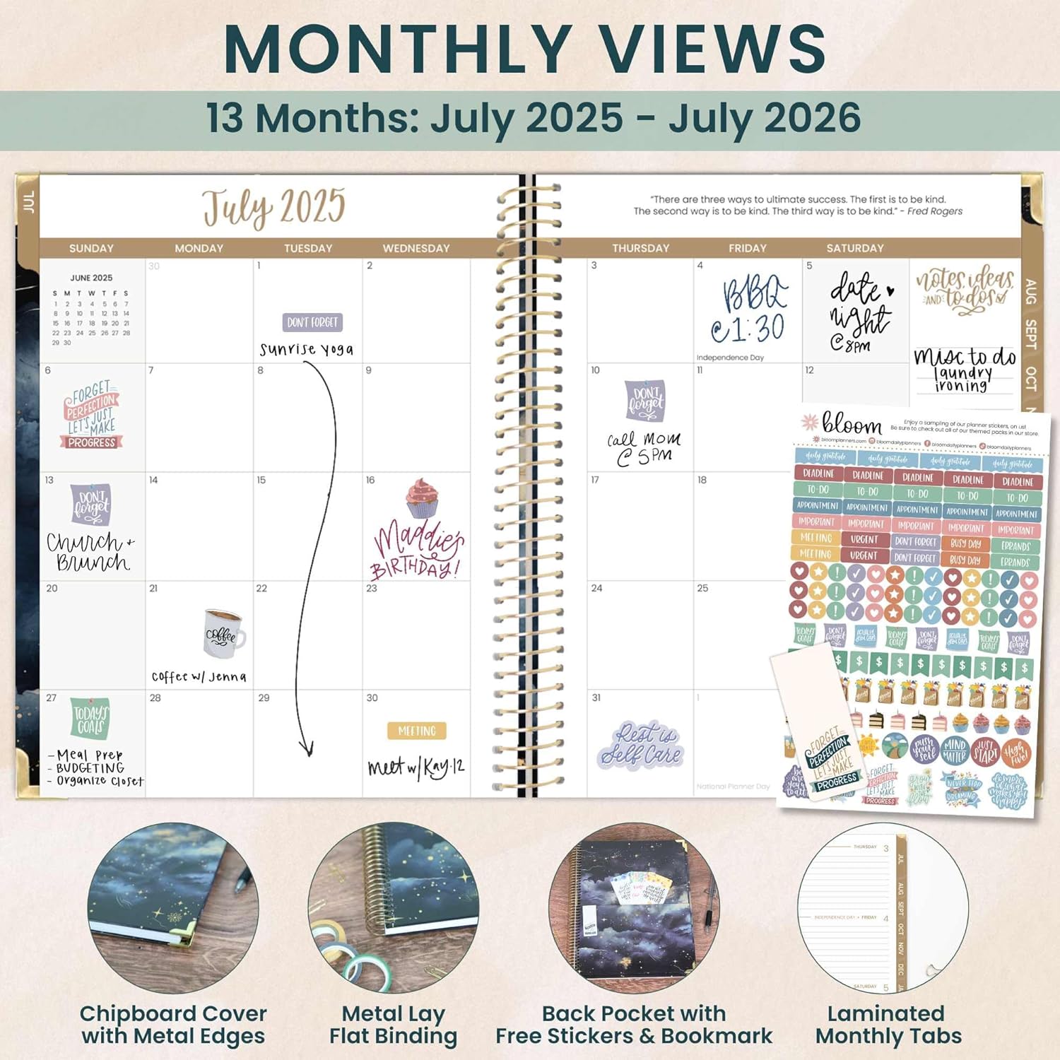 bloom daily planners HARDCOVER 2025-2026 (8.5" x 11") Academic Year Day Planner (July 2025 - July 2026) - Task Goal Organizer - Monthly & Weekly Inspirational Agenda Book - Midnight Sky