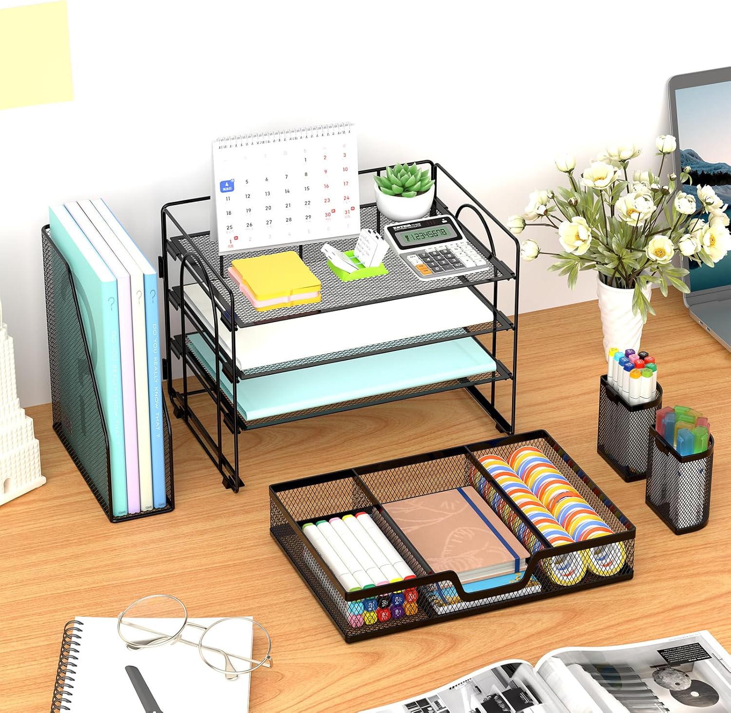 - 【Improve Work Efficiency】The desk organizer makes full use of the vertical space of the desktop to create the maximum storage space, helping you quickly distinguish between files and items in each compartment, making the access to items more efficient.