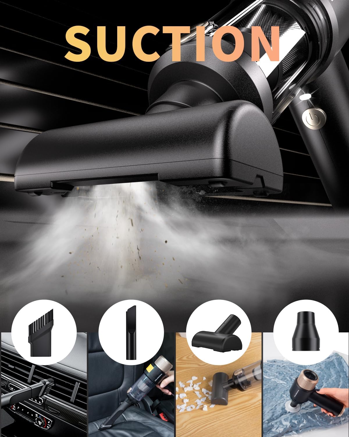 - 🌀【Ideal Gift Choices】: The Handheld Cordless Vacuum Cleaner has 9000PA of suction power to easily blow dust and other particles off the surfaces of items, as well as suck out tiny stubborn dirt hidden in keyboards and crevices. The dust busters is an ideal thoughtful gift for men and women for home, office and car.