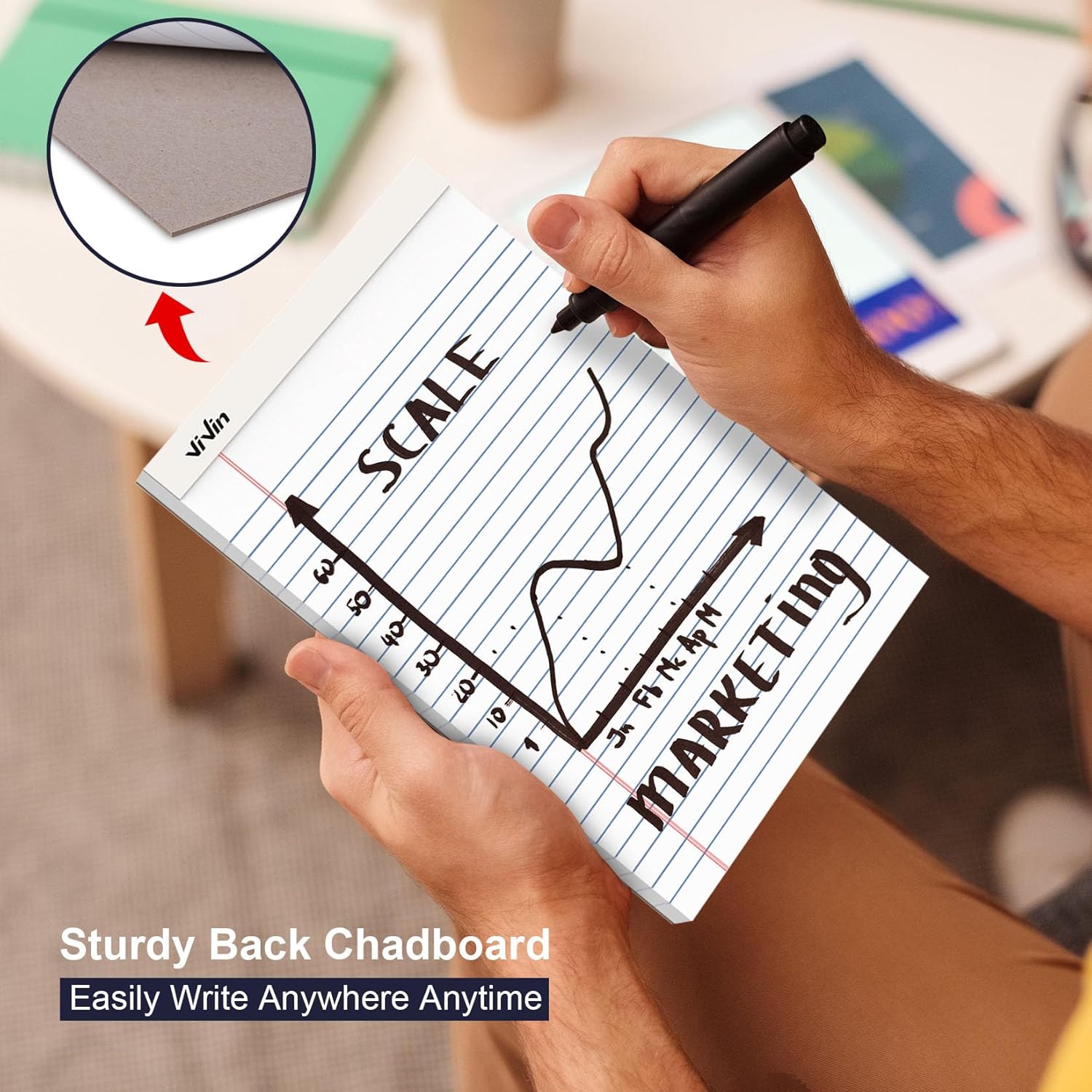 - ăPortable SizeăThis 5 x 8 inch legal notepad is the perfect size to carry out. It's large enough to take detailed notes yet compact enough to easily fit into a briefcase, backpack, or handbag, making it an ideal choice for work and study on the go. And the white paper features premium printing which is easy to write and helps to reduce eye fatigue.