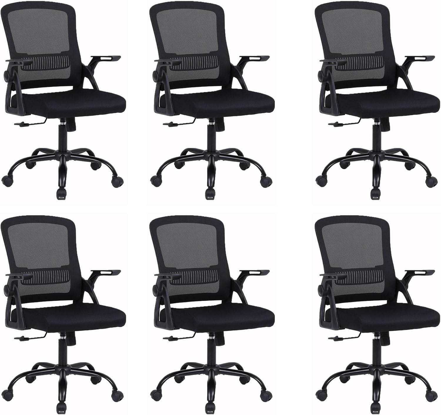 Modern Ergonomic Office Chair, Black, Mesh Back, Flip-up Armrests, Adjustable Height, 300 lbs Capacity